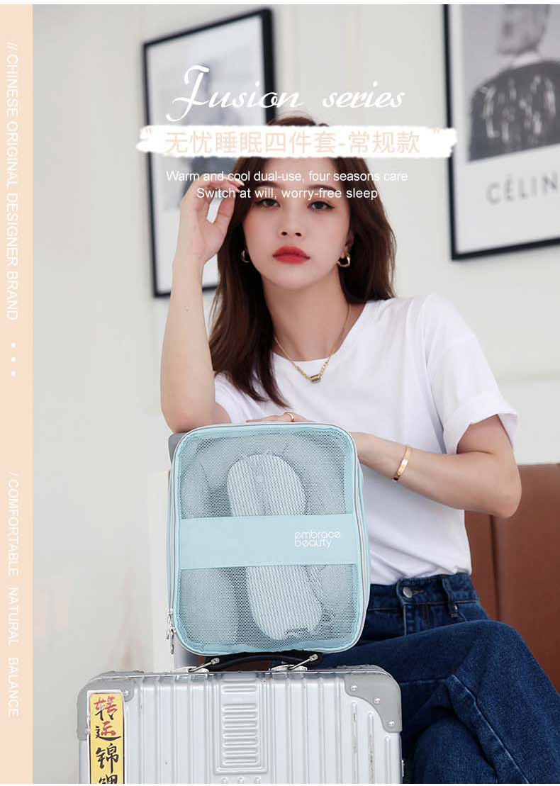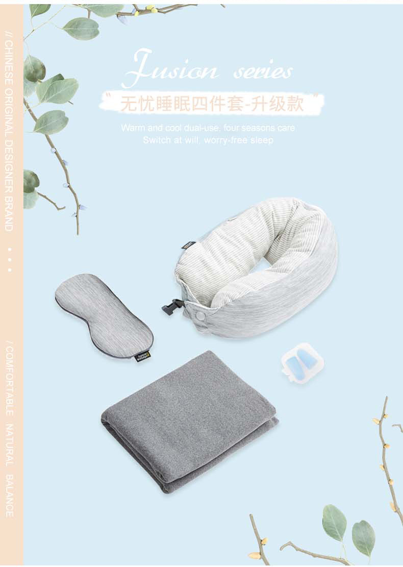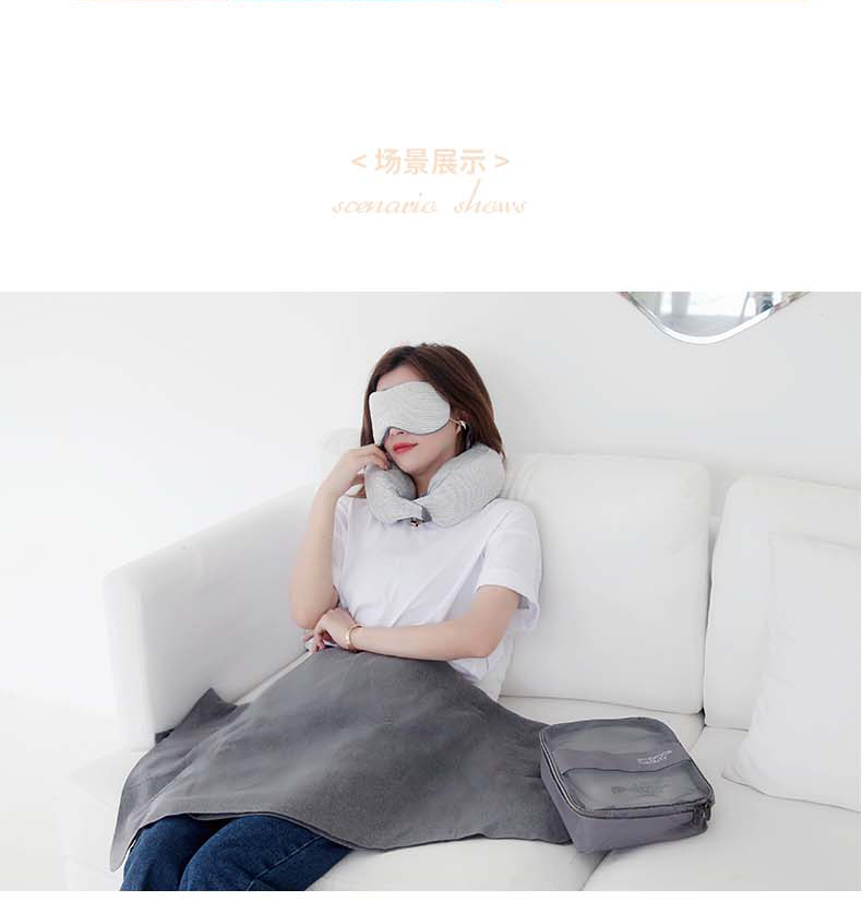 又见美物 旅行出差办公睡眠套装四件套 温凉双面颈枕眼罩披肩毯盖毯围巾收纳包 EB4Z01