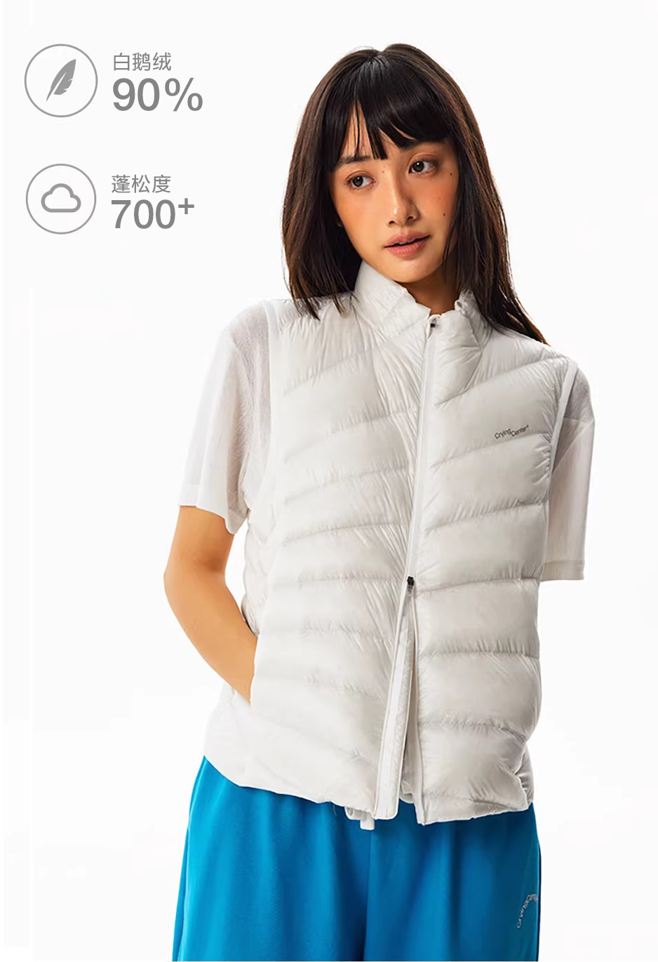 CryingCenter半透明暖冬立领收腰放射排骨状无胆羽绒马甲