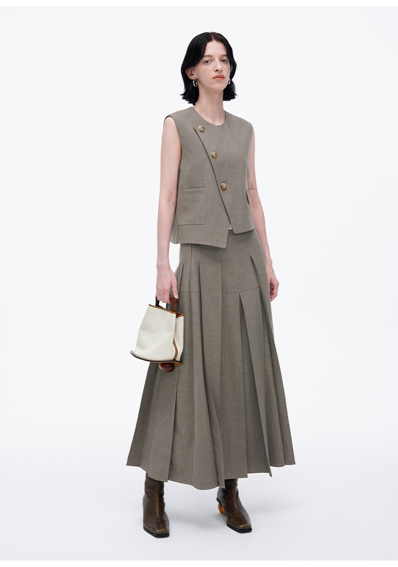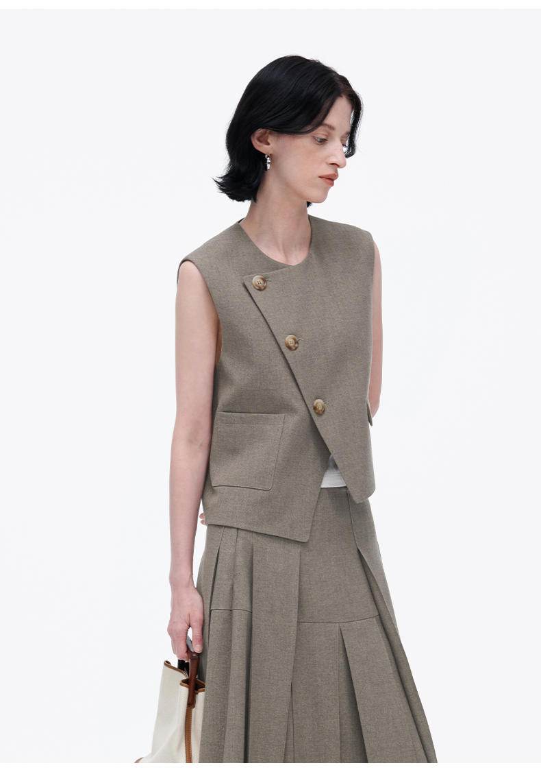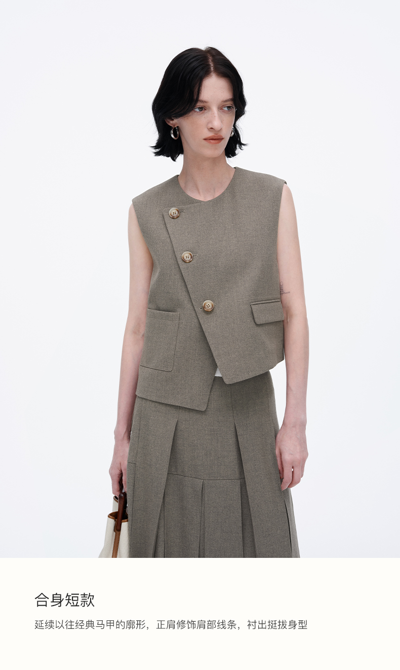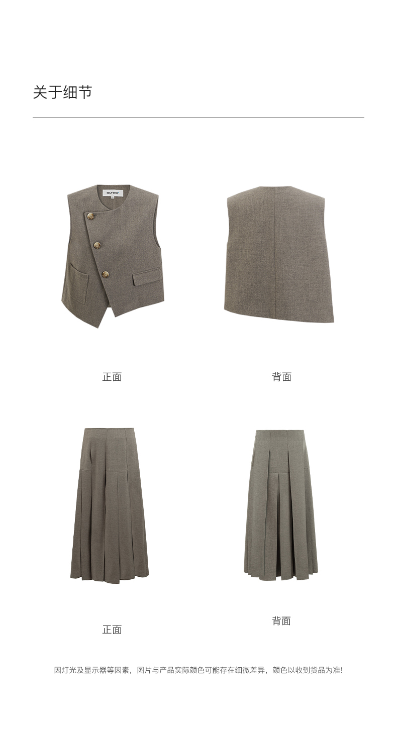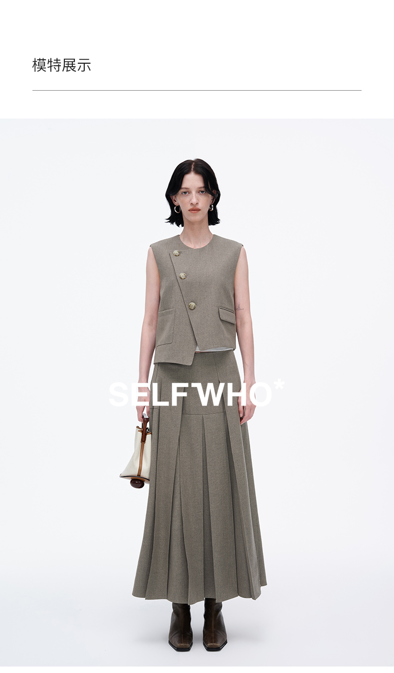 SELFWHO不对称复古马甲背心女2025春新款小个子短款半裙马夹套装
