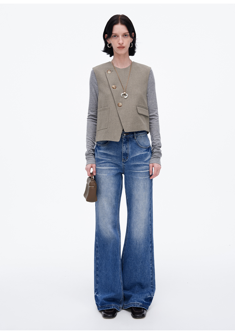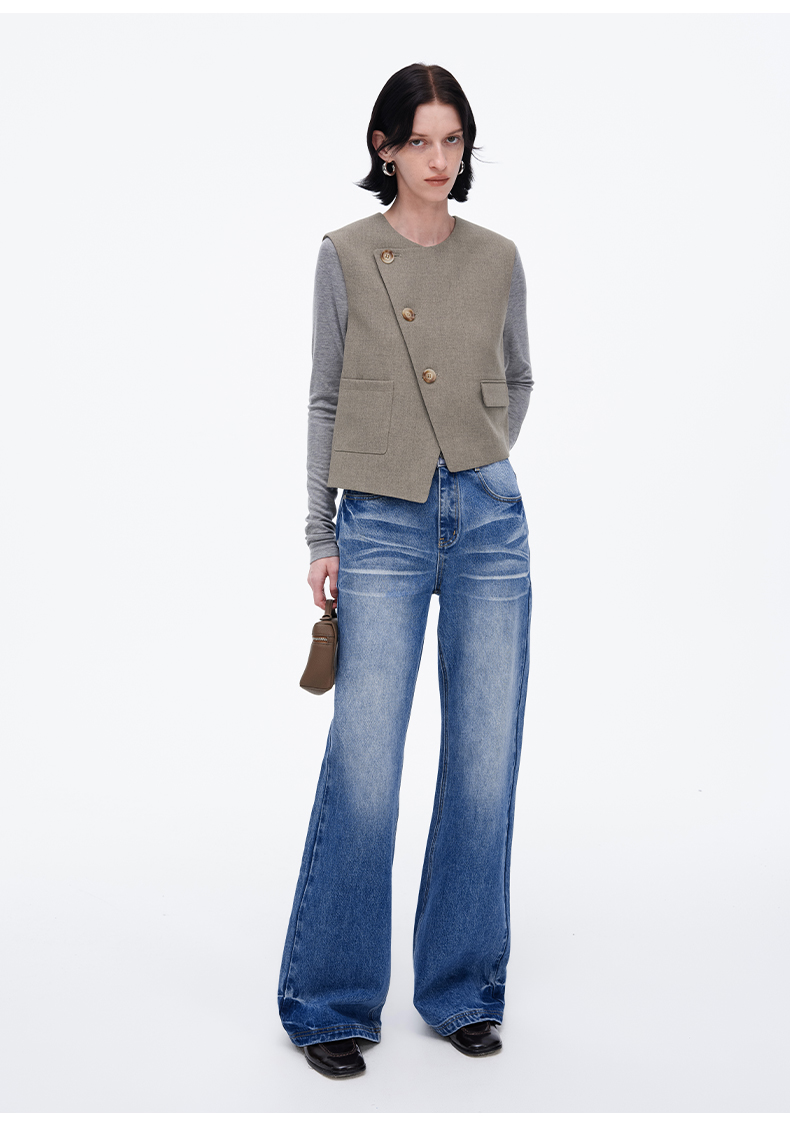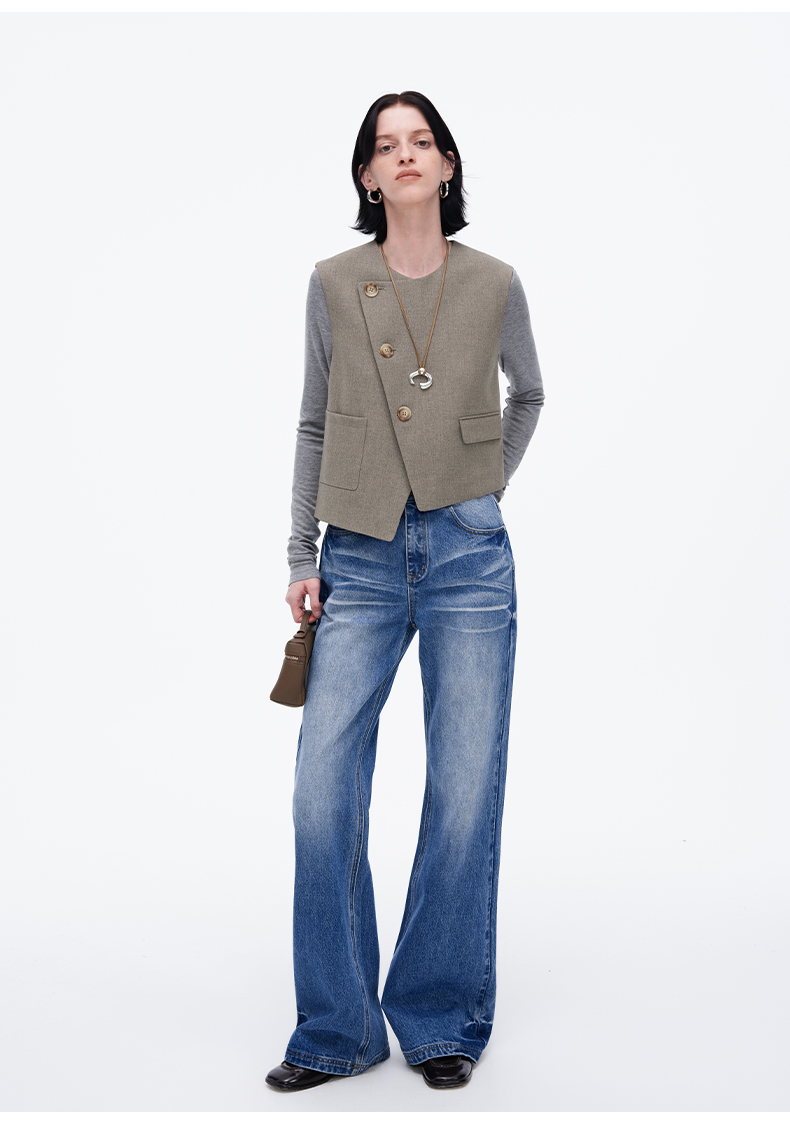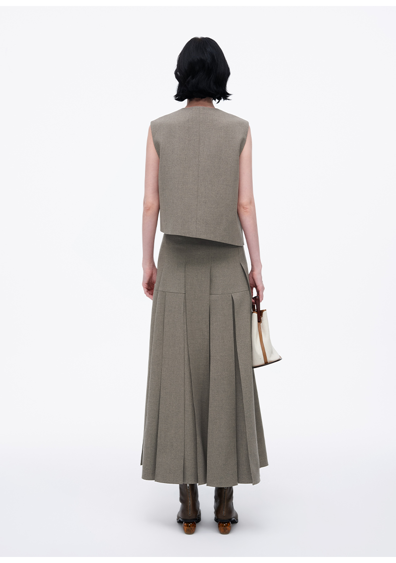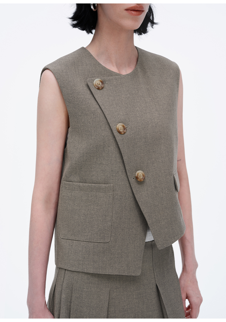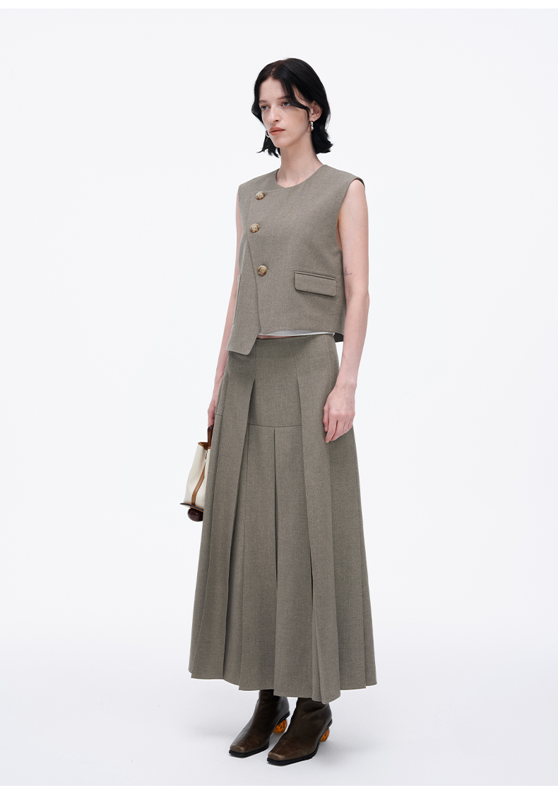 SELFWHO不对称复古马甲背心女2025春新款小个子短款半裙马夹套装