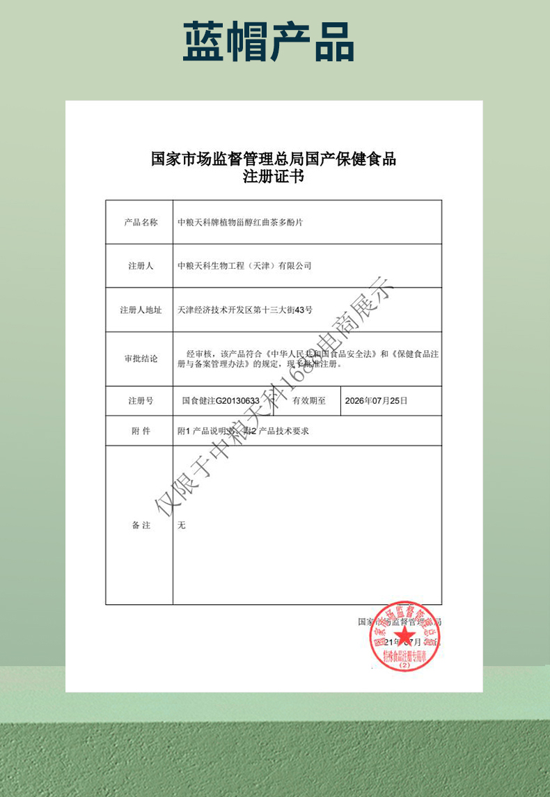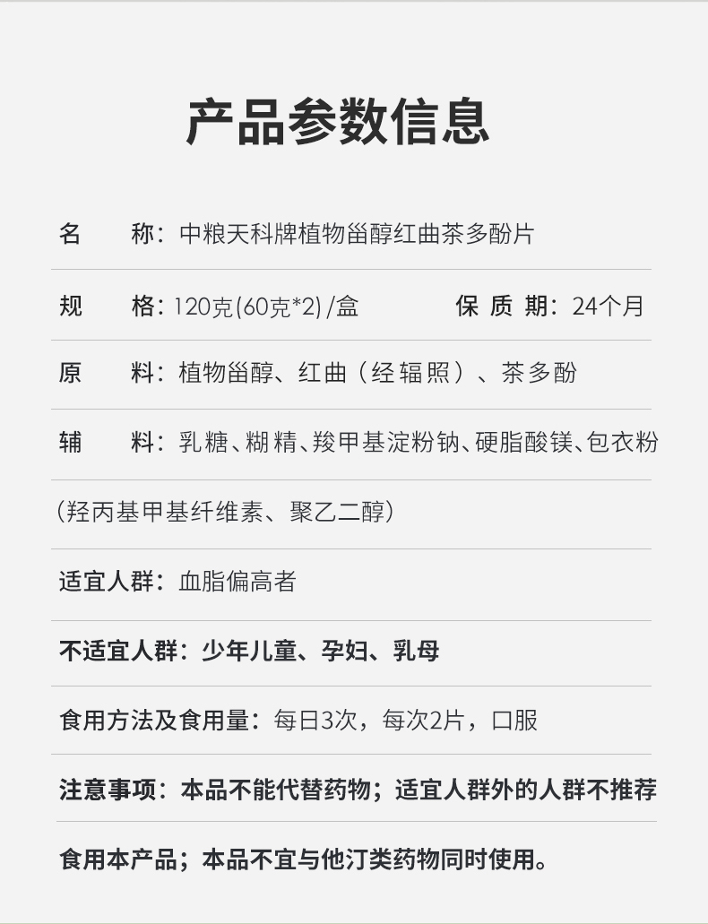 中粮天科植物甾醇红曲茶多酚片60g*2