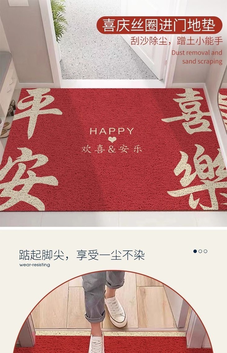 【平安喜乐❗️新年喜庆如意地毯】春节地垫,一踩即干,地板一点不脏,新春联玄关门口踩脚垫,红包喜庆入户门地垫器
