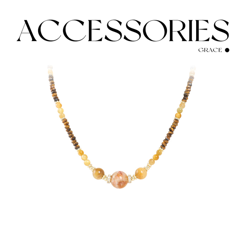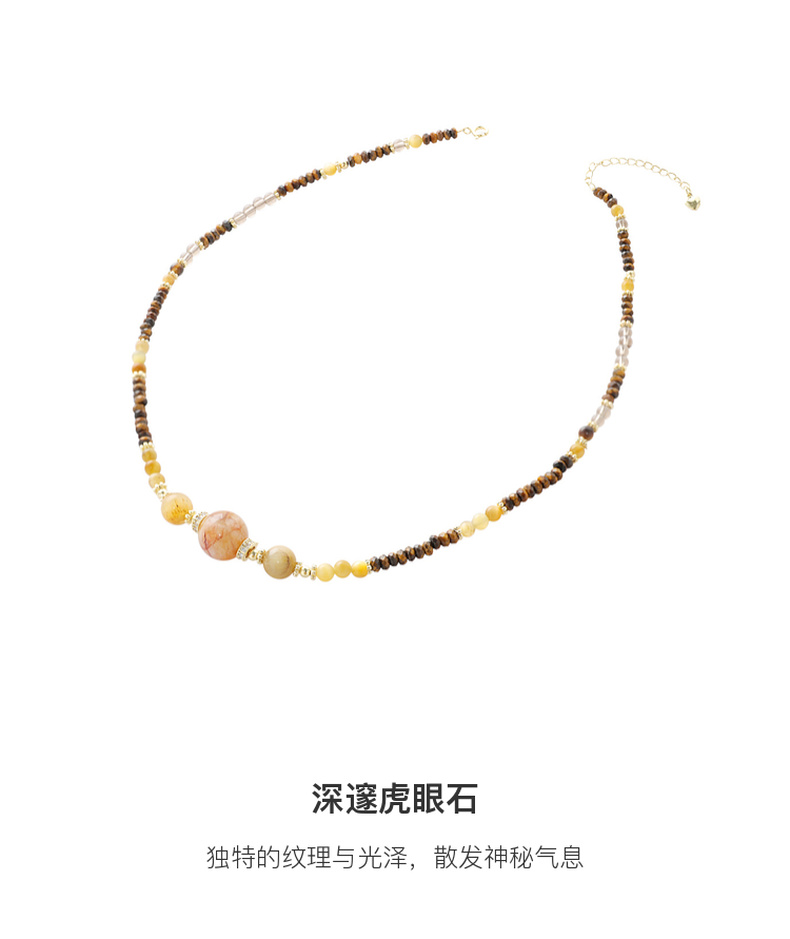 【美拉德系列】三彩2025新款复古民族风虎眼石串珠项链黄塔晶度假