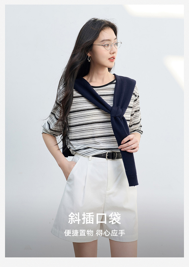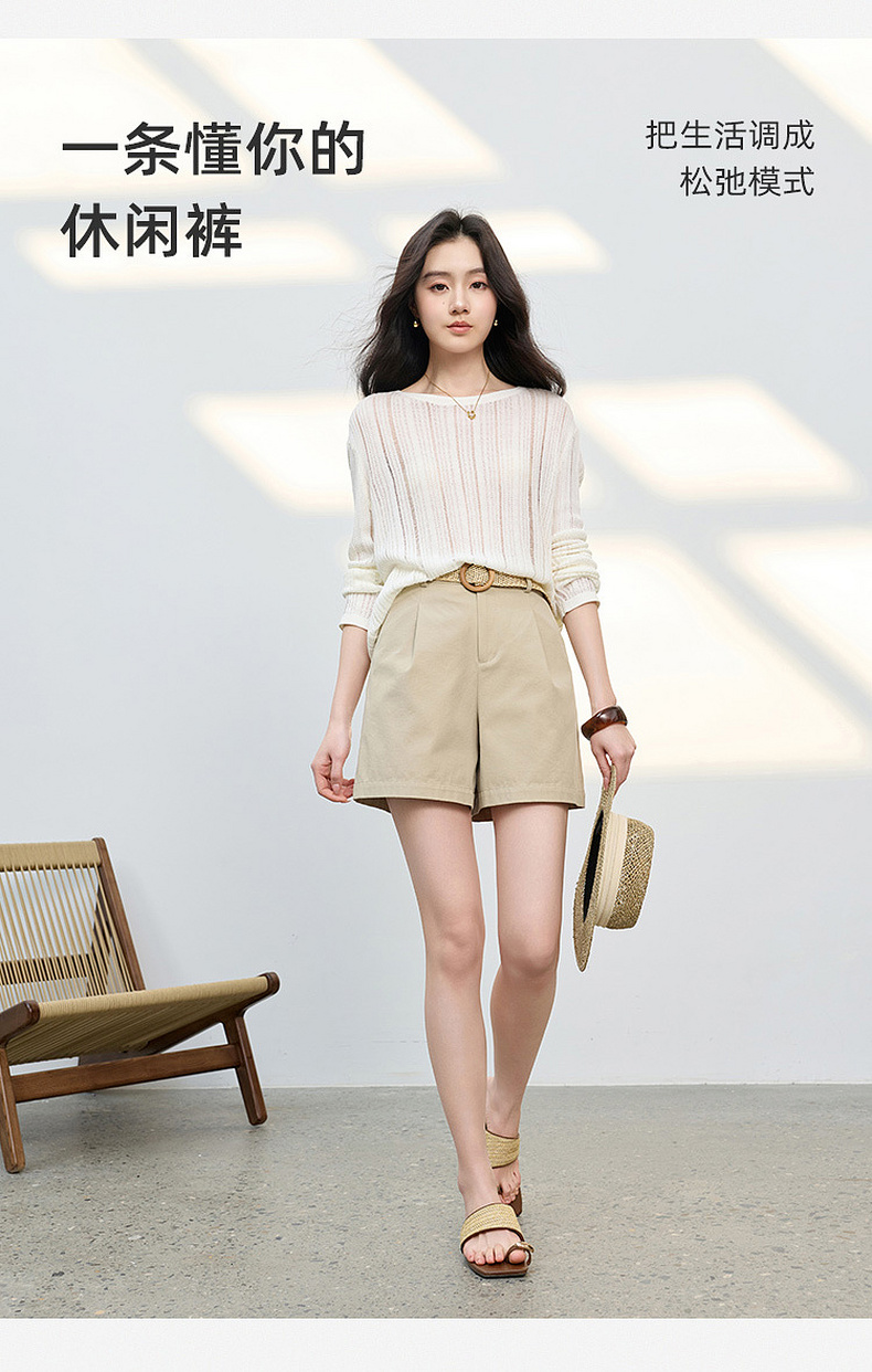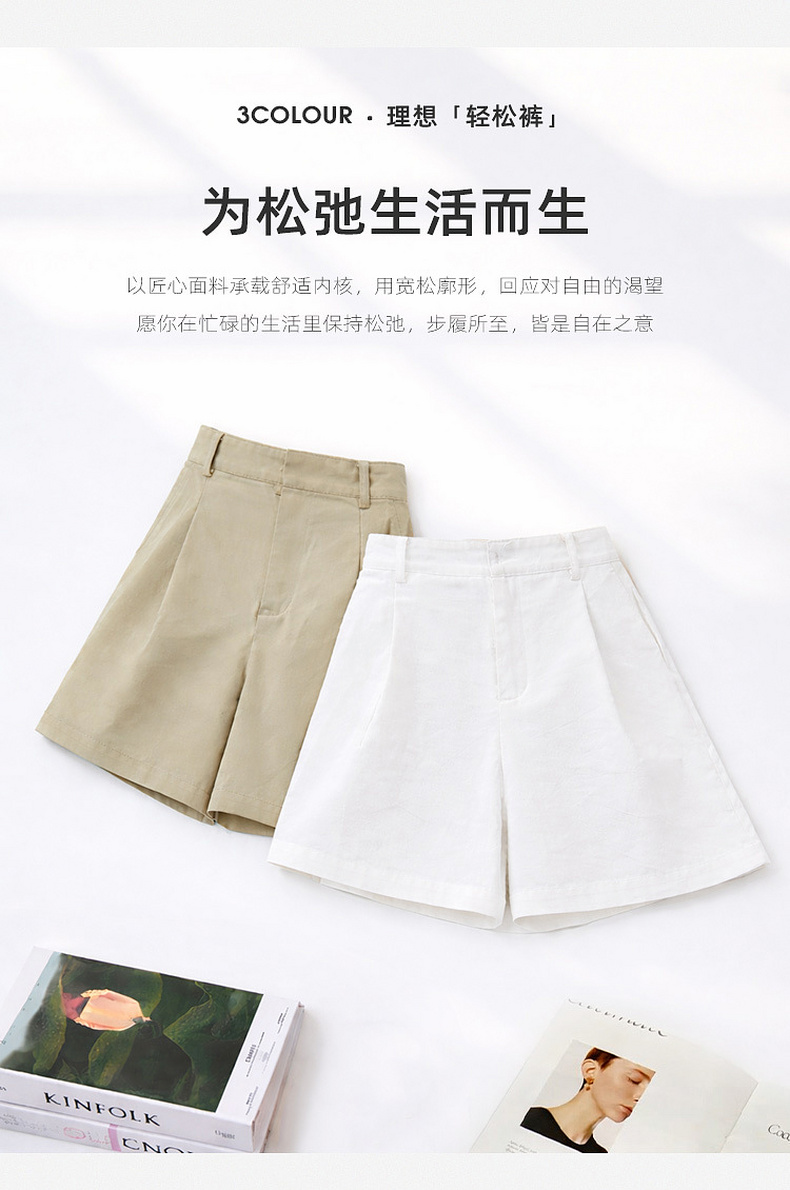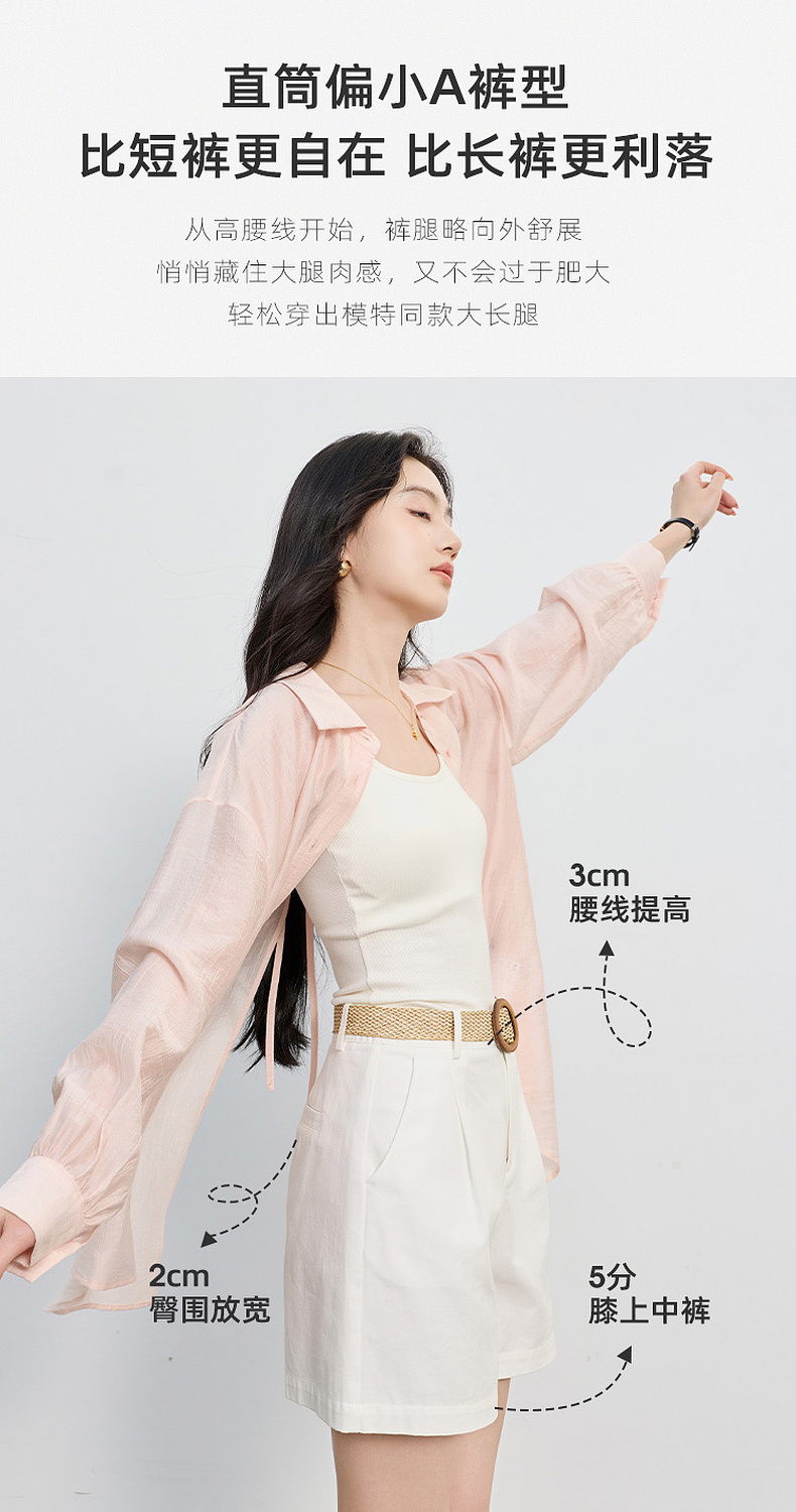 三彩2026春季新款高腰收腰休闲裤中裤五分裤宽松直筒裤显瘦百搭M