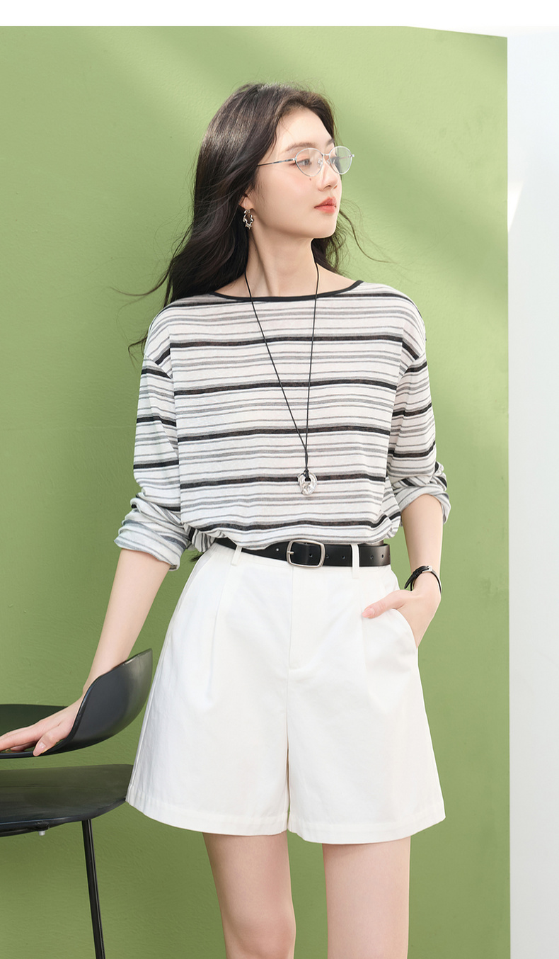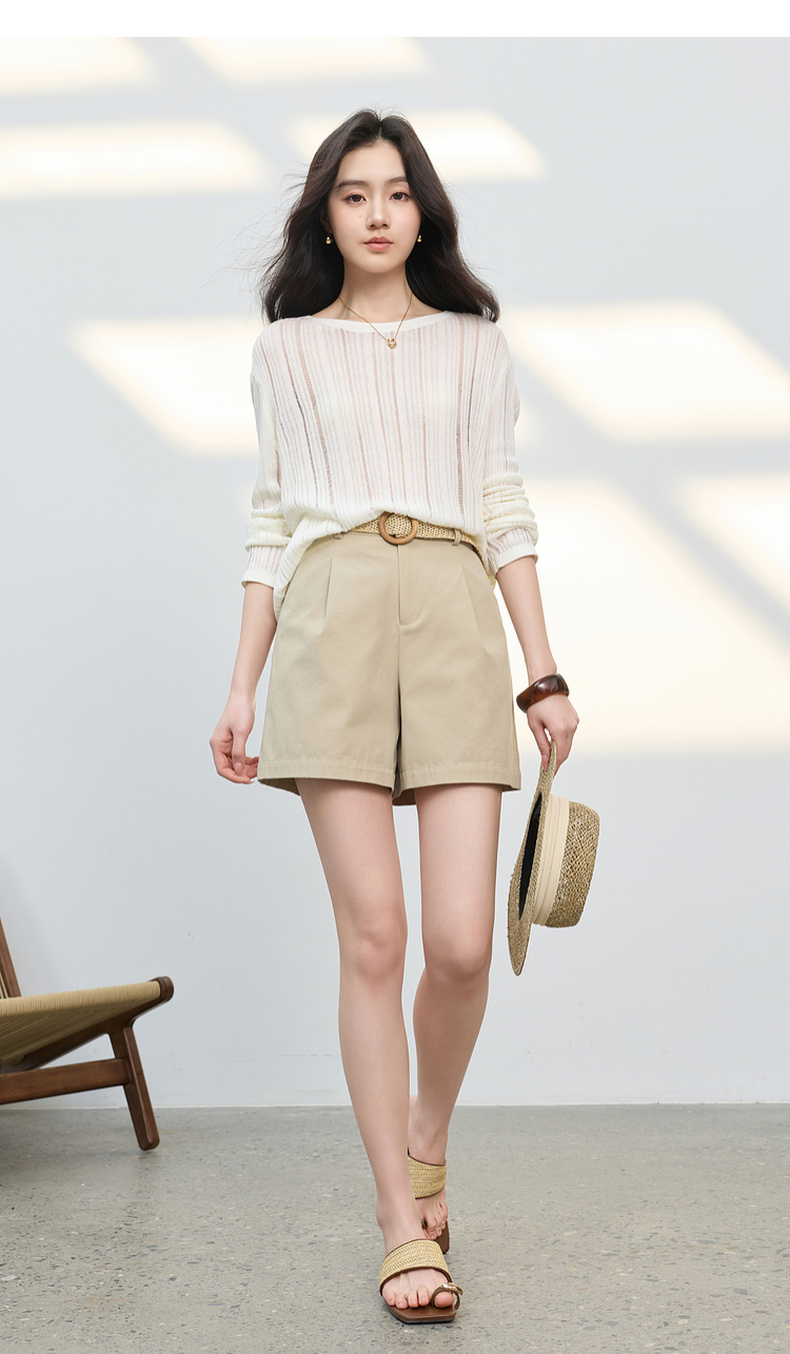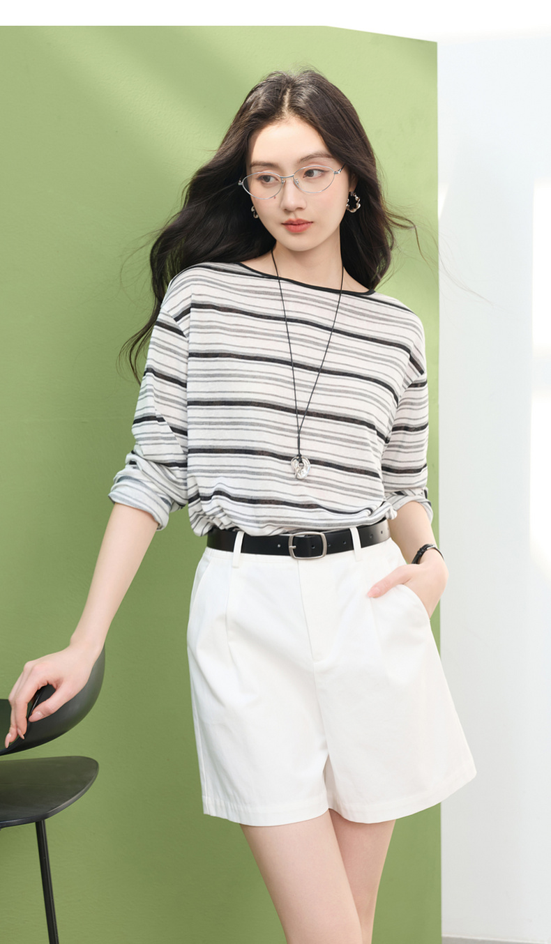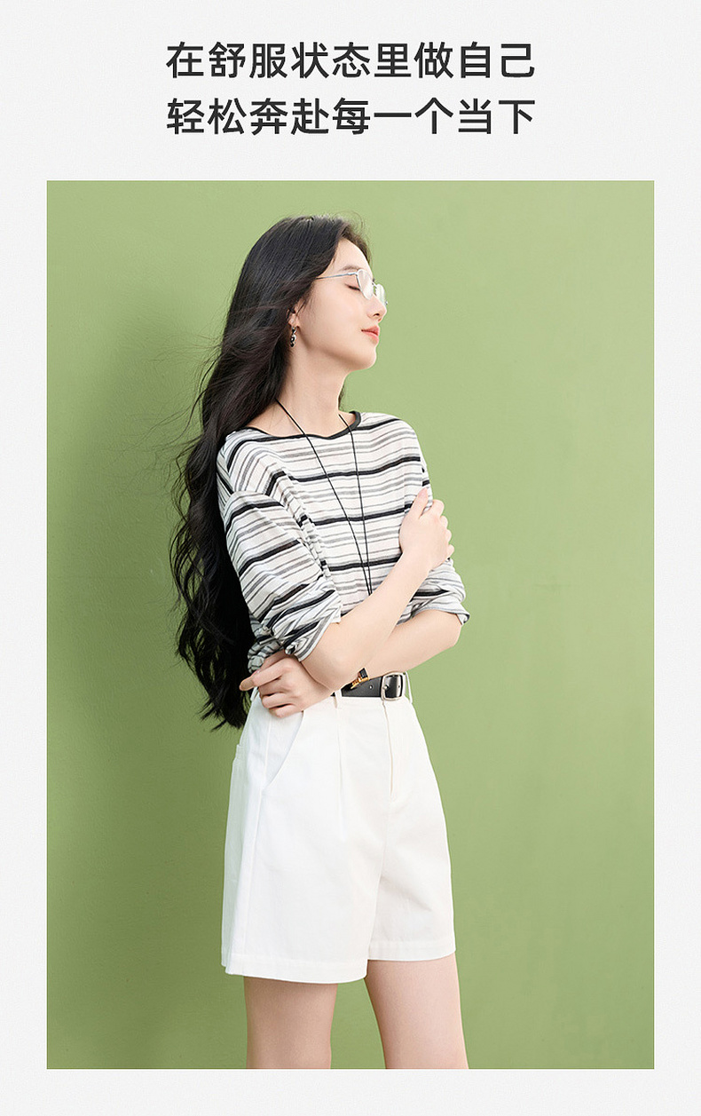 三彩2026春季新款高腰收腰休闲裤中裤五分裤宽松直筒裤显瘦百搭M