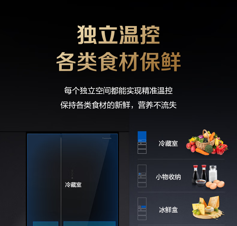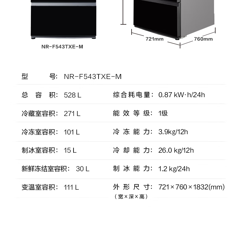 松下(Panasonic)528升多门冰箱纳诺怡X 自由变温 一级能效 自动制冰 APP智控NR-F543TXE-M【线下同款】