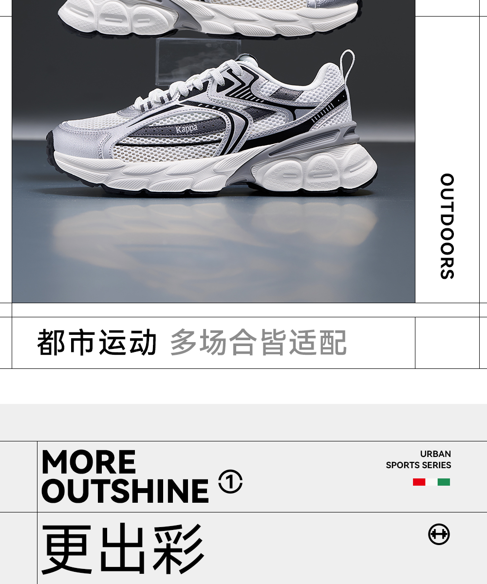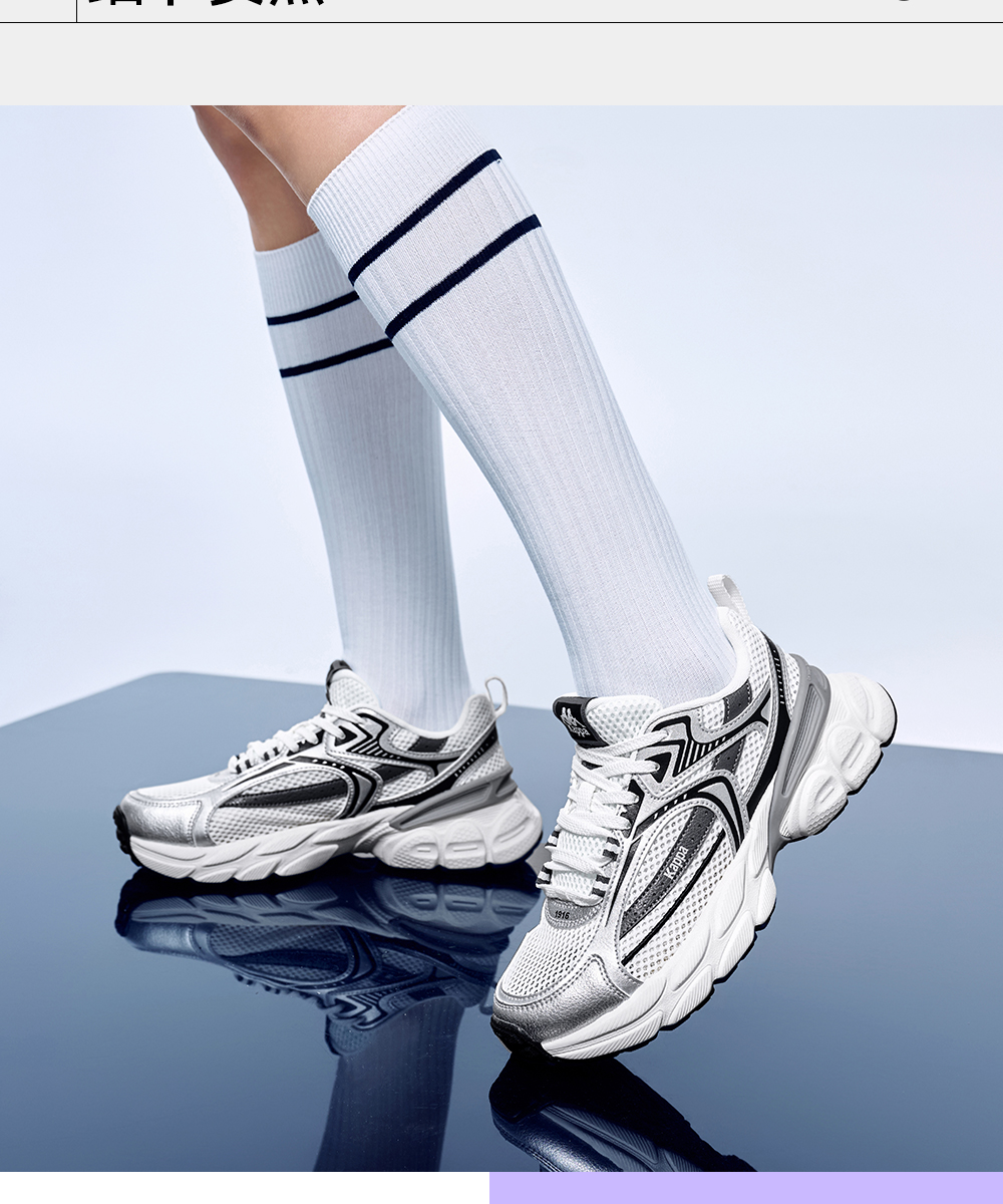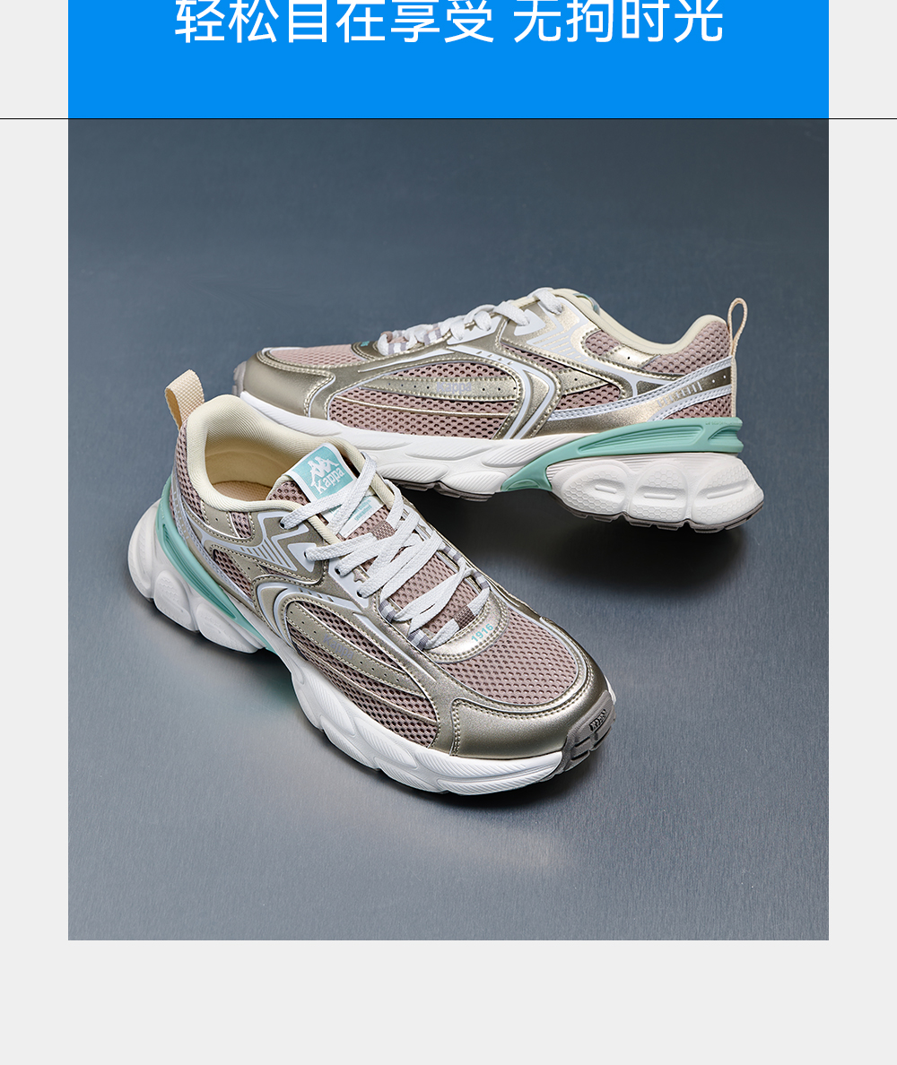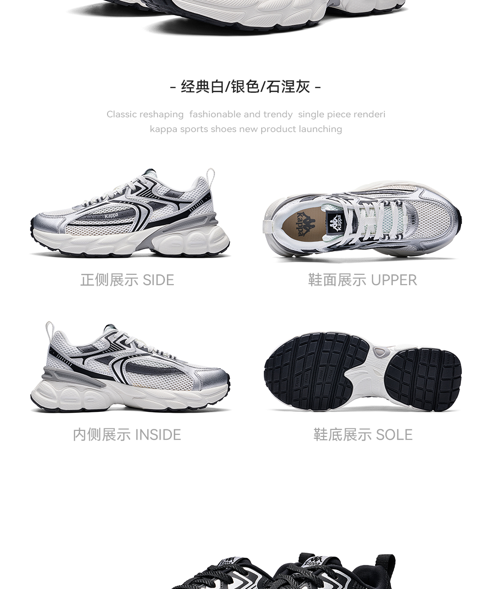 Kappa卡帕背靠背老爹鞋女款2025新款透气网面运动鞋男银色跑步鞋K0FX5MC05