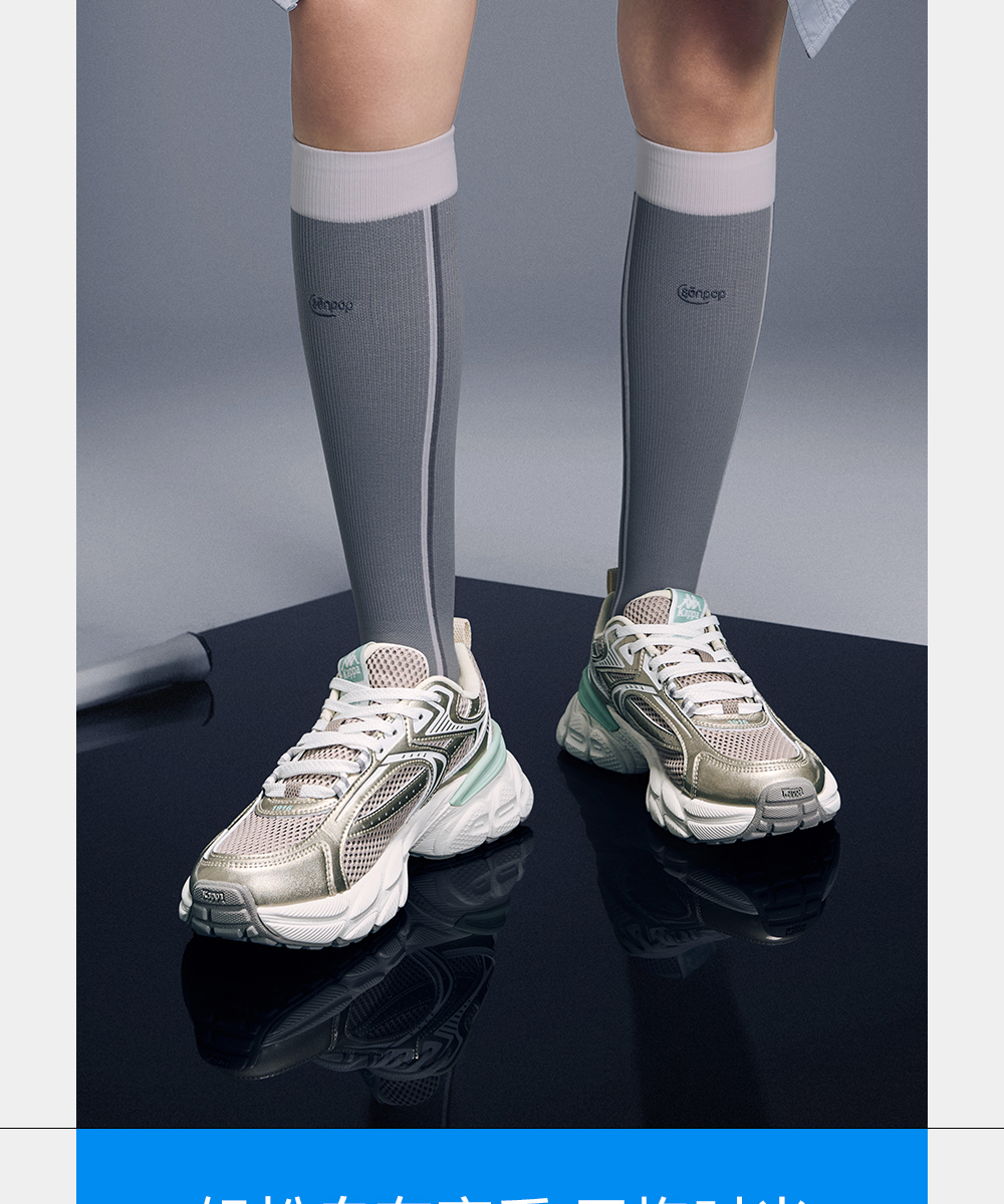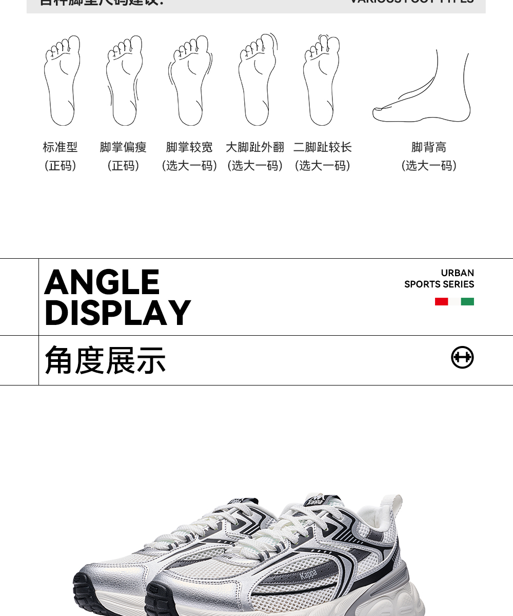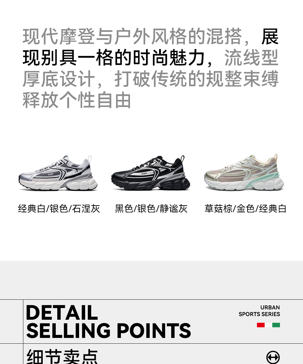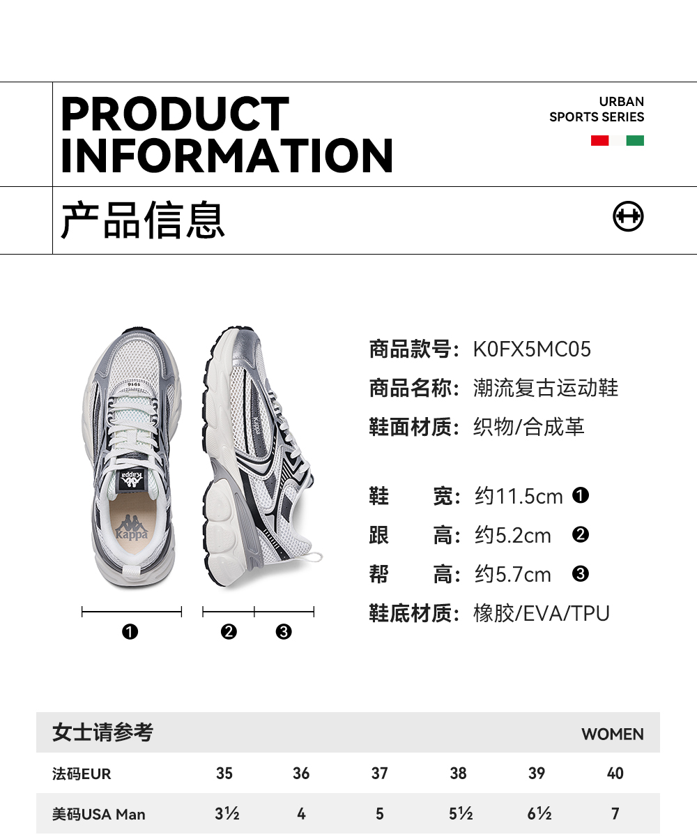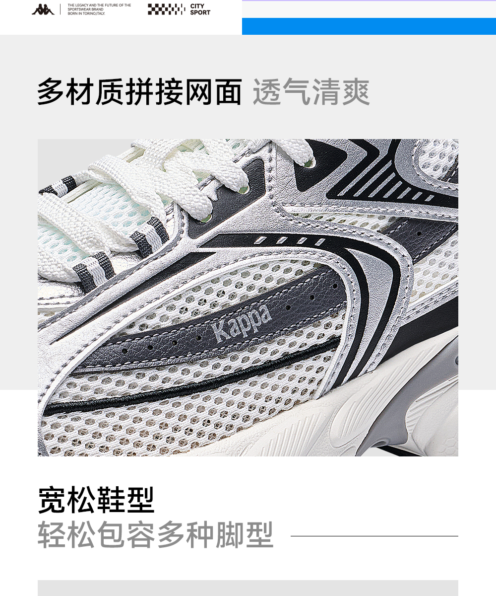Kappa卡帕背靠背老爹鞋女款2025新款透气网面运动鞋男银色跑步鞋K0FX5MC05