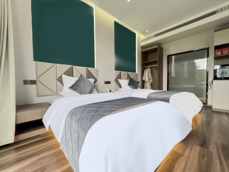 双床房内床型有 1.2 米双床与 1.4 米双床两种,无法指定床的尺寸。