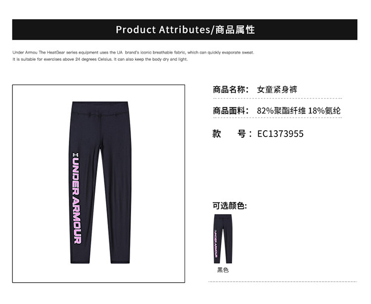 【12月-特惠福利】Under Armour安德玛儿童运动多用瑜伽裤1373955