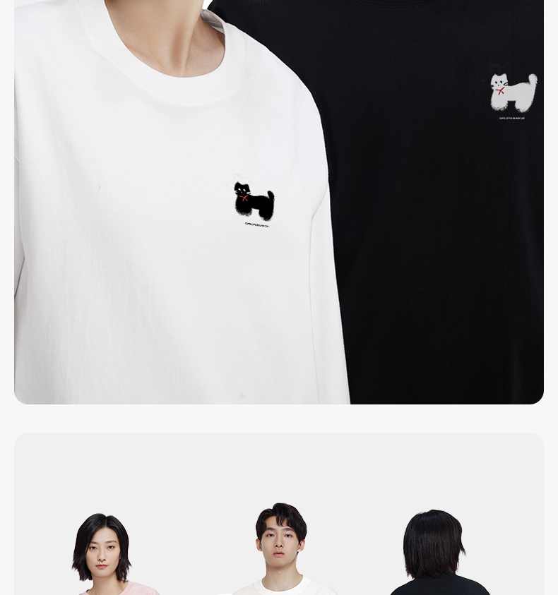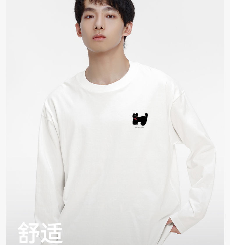 「棉的美学」可爱小猫印花长袖T恤~2024秋季新款宽松显瘦打底衫女
