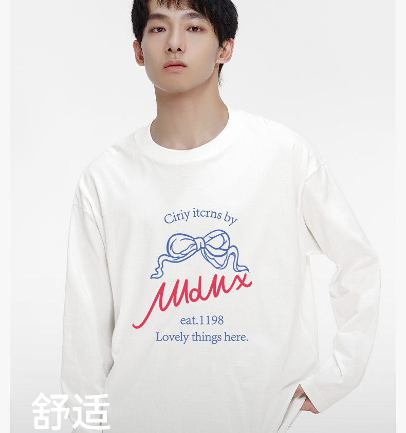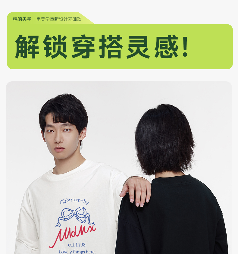「棉的美学」休闲慵懒风纯棉圆领T恤女简约字母打底衫ins韩系上衣