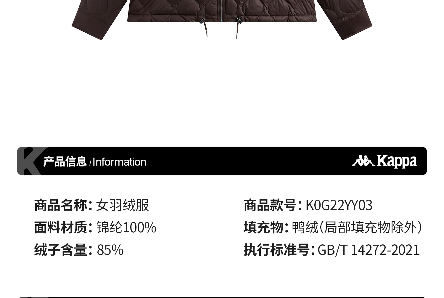 Kappa 羽绒服女2025新款休闲运动外套短款翻领保暖上衣K0G22YY03