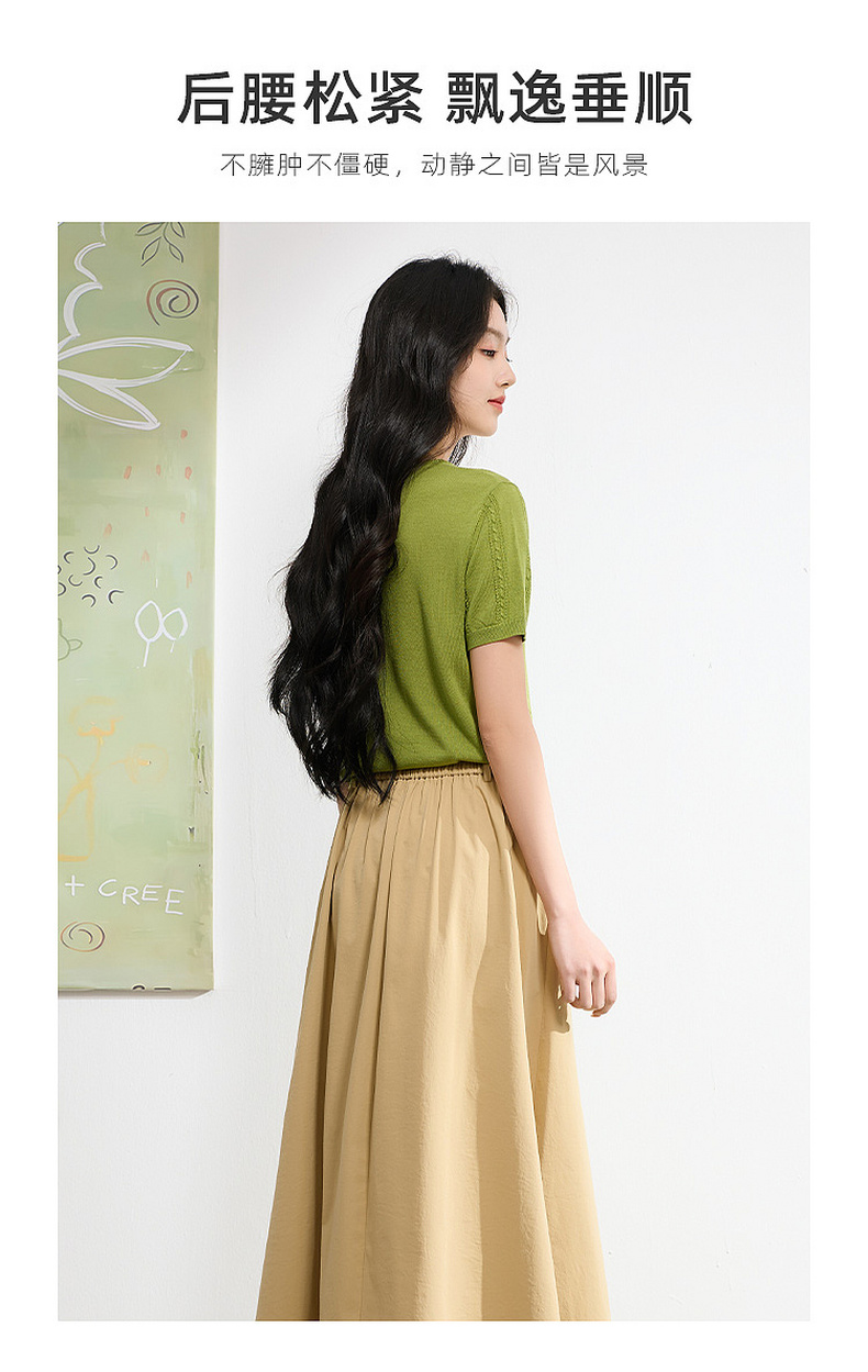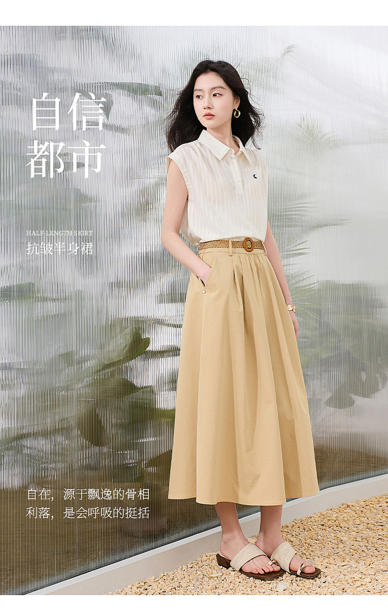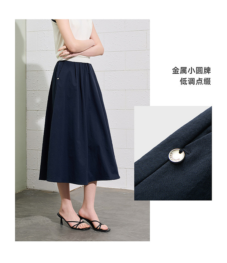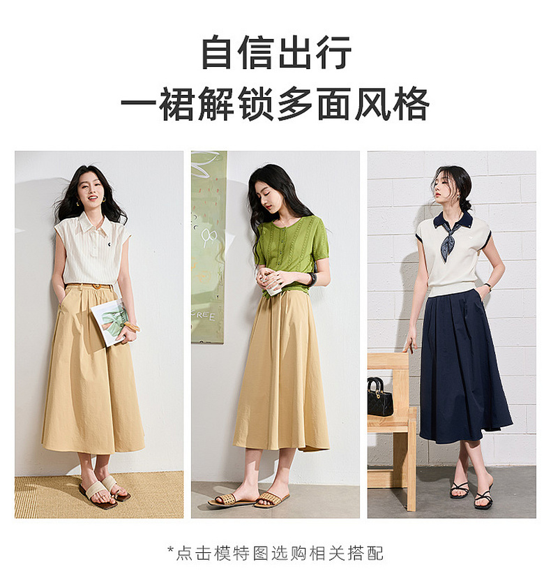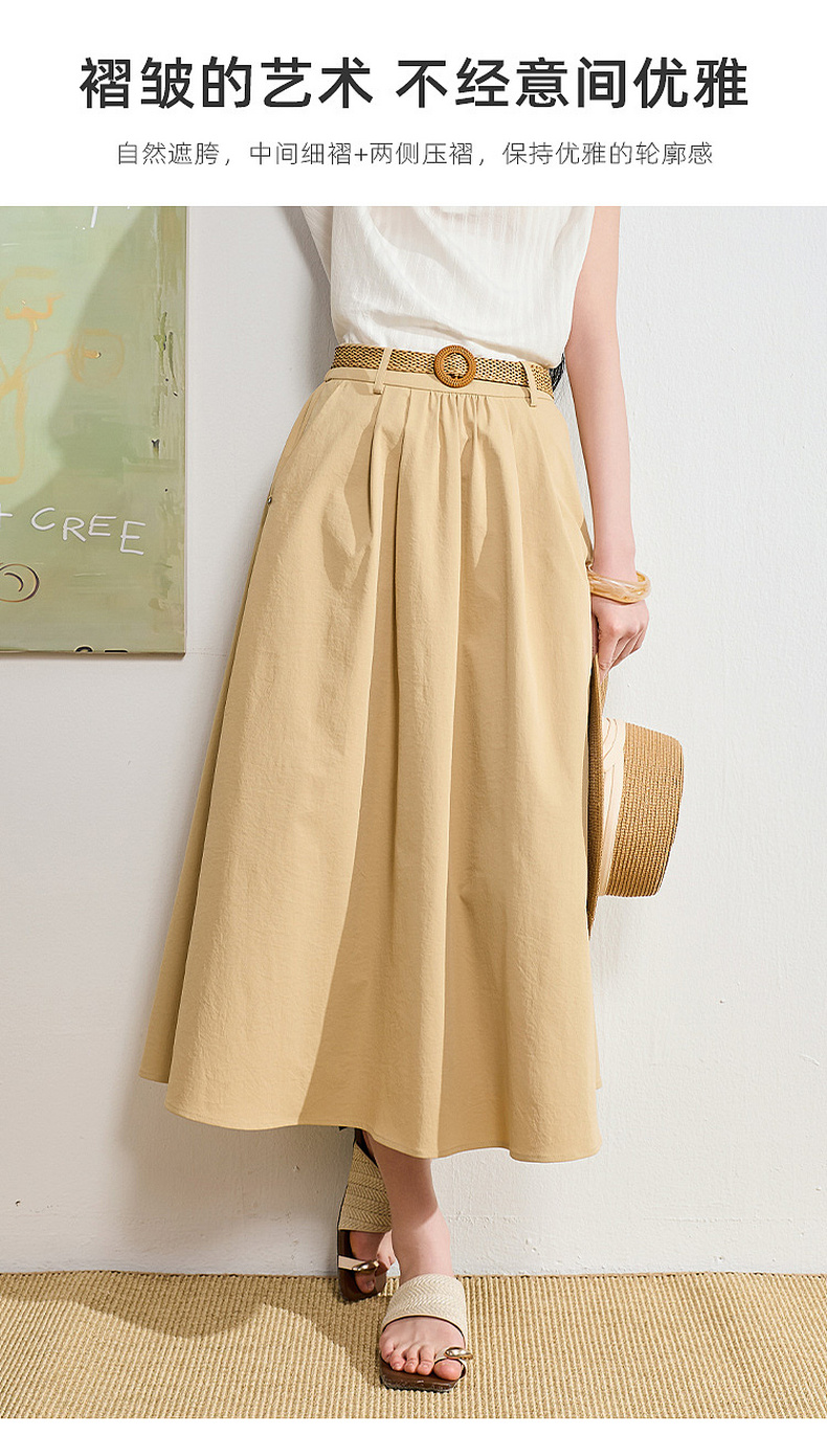 【抗皱半身裙】三彩2026夏季新款纯色高腰A字裙伞裙长裙通勤S