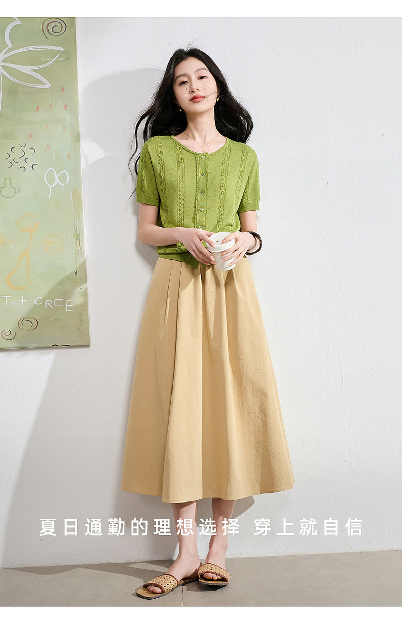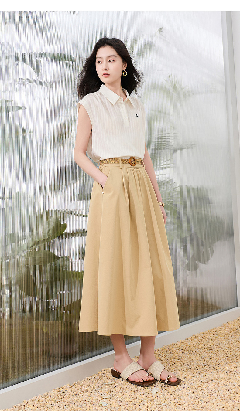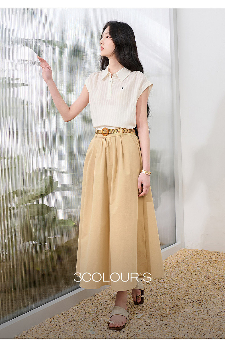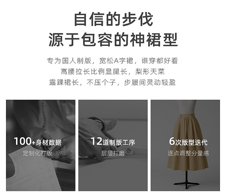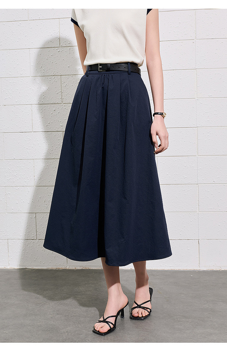 【抗皱半身裙】三彩2026夏季新款纯色高腰A字裙伞裙长裙通勤S