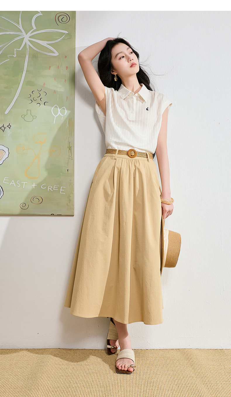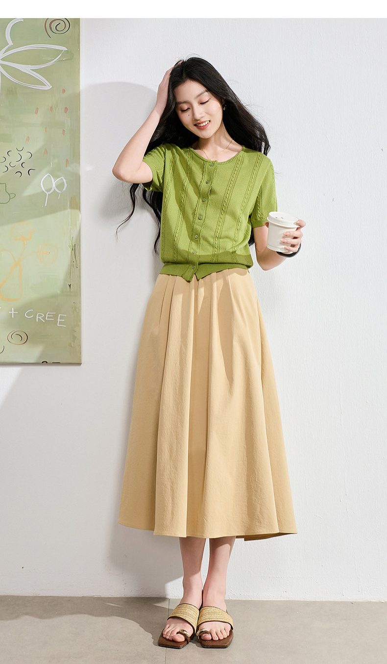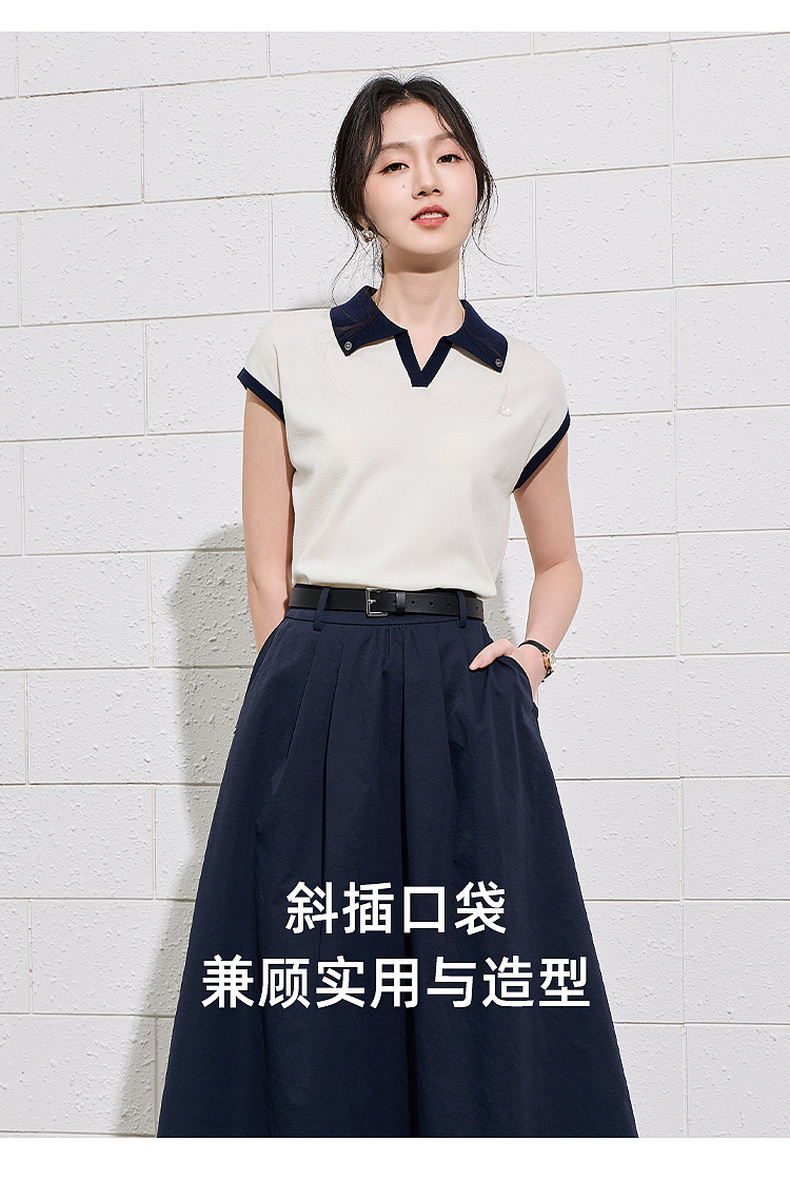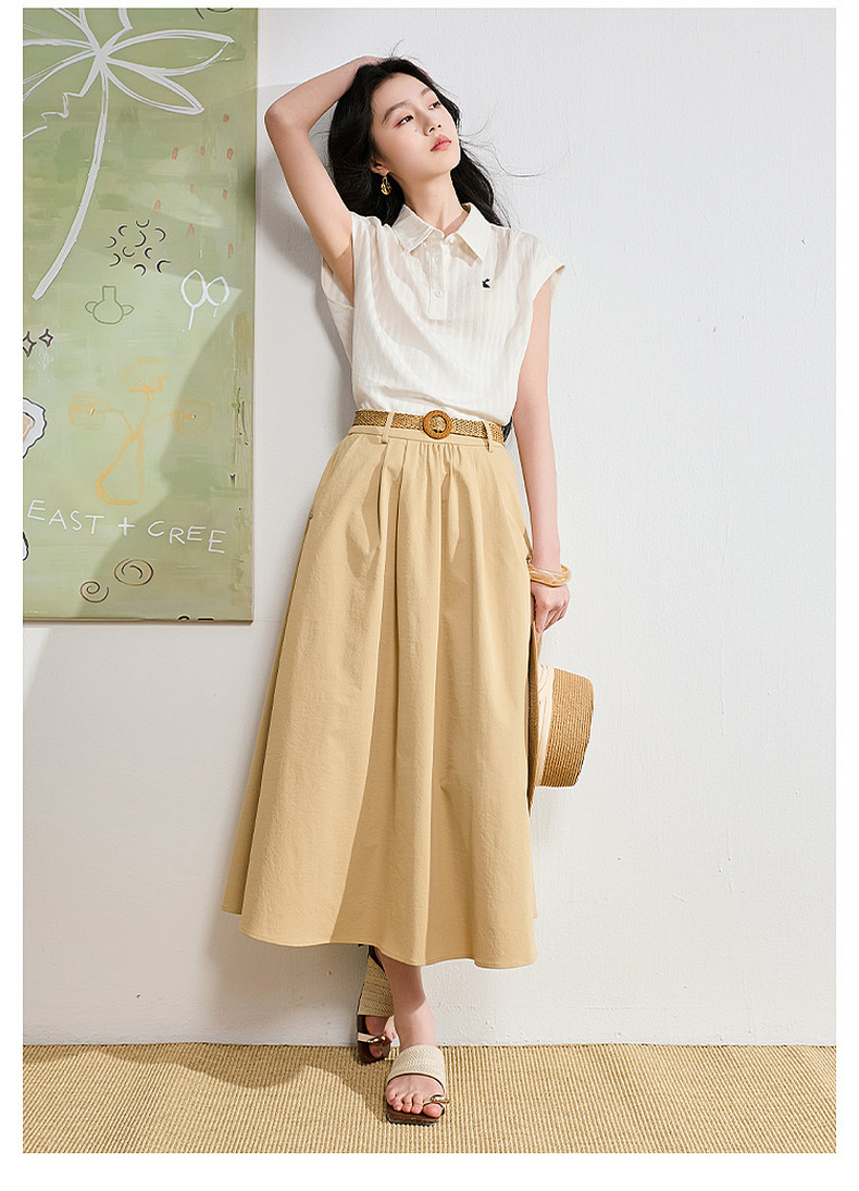 【抗皱半身裙】三彩2026夏季新款纯色高腰A字裙伞裙长裙通勤S