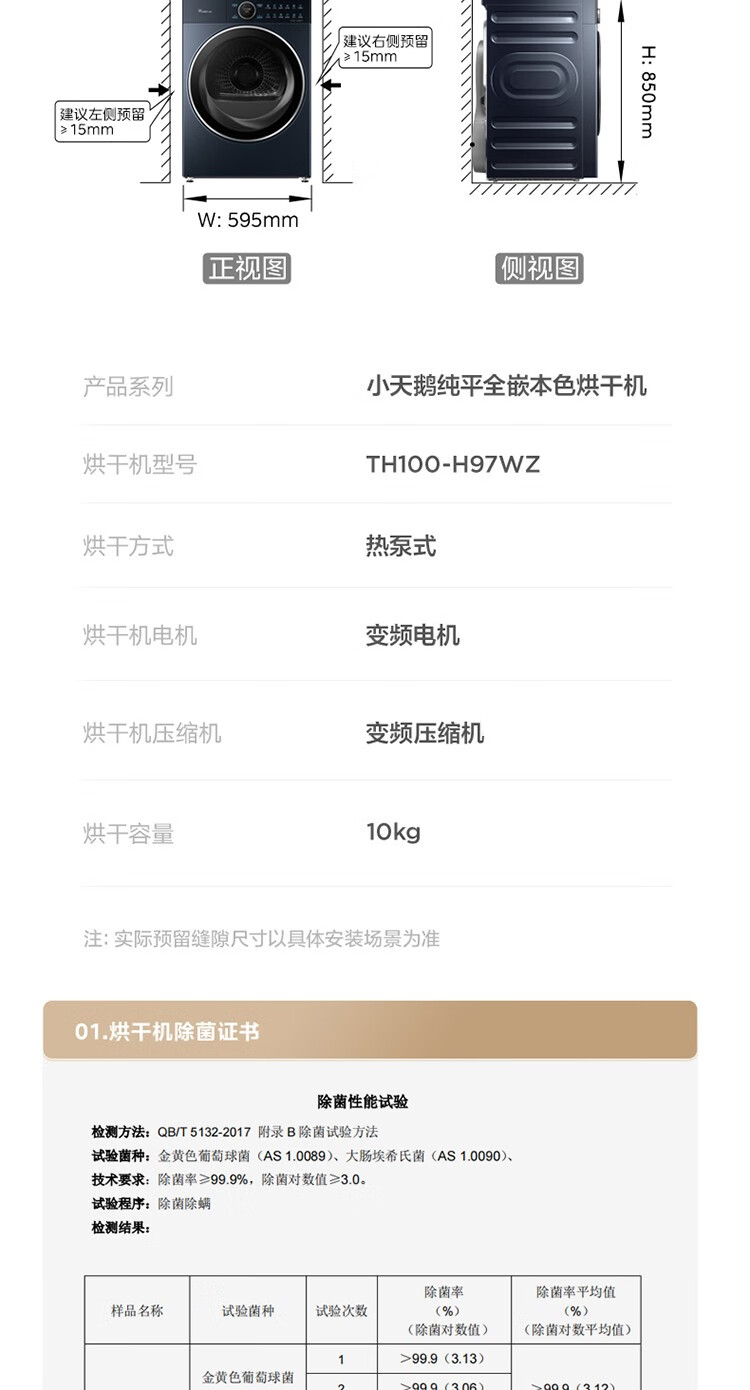 【限天津区域】小天鹅/烘干机/TH100-H97WZ