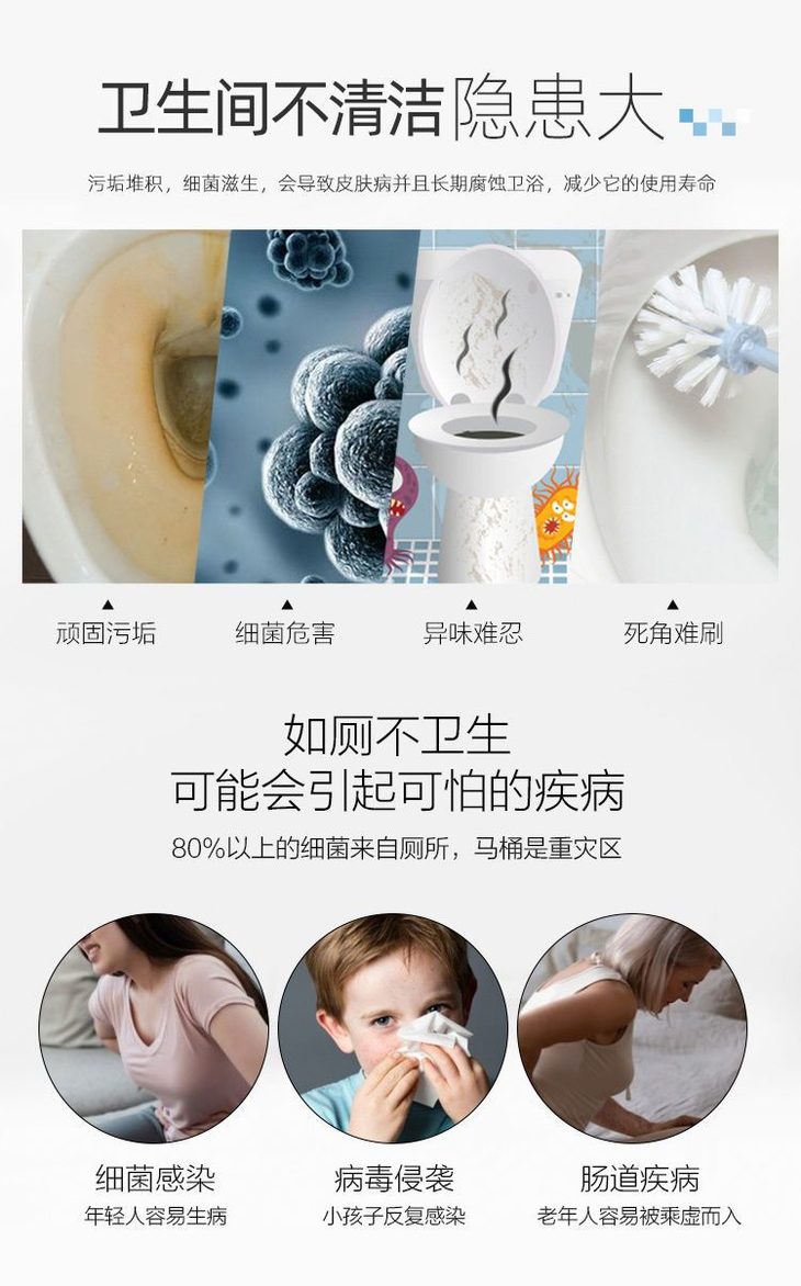大家设想一下这个场景: 又脏又臭的厕所🤮🤮🤮 陈年尿垢、酸腐屎味 说不清的黑黄色物体粘在上面 还没开始上厕所就要把人送走了 还要在厕所练潜水憋气嘛🤣 特别是过年家里要来客人 这这这……尴尬的要找个地缝钻进去了🤯
