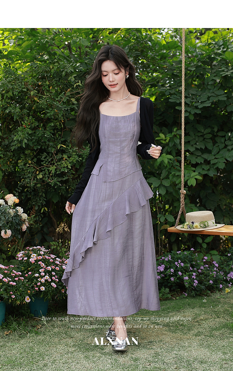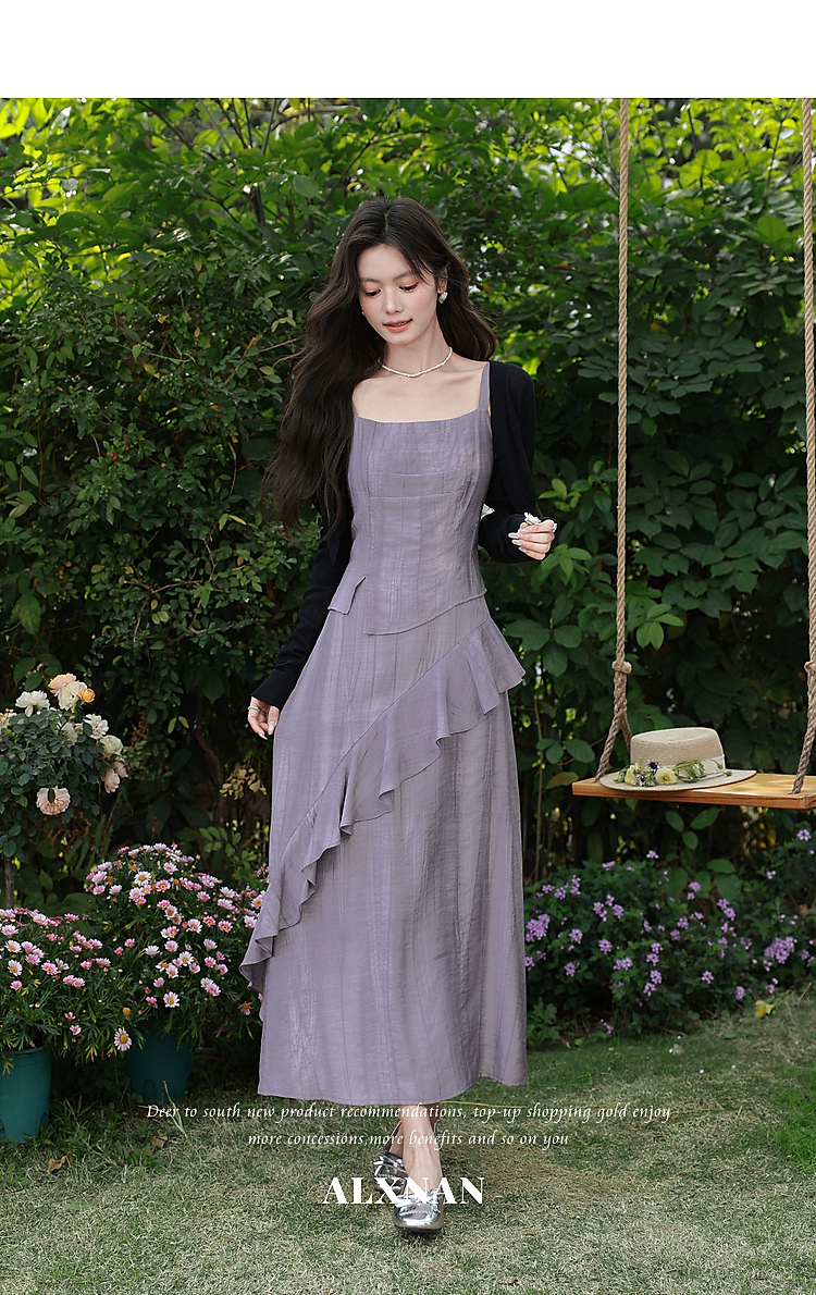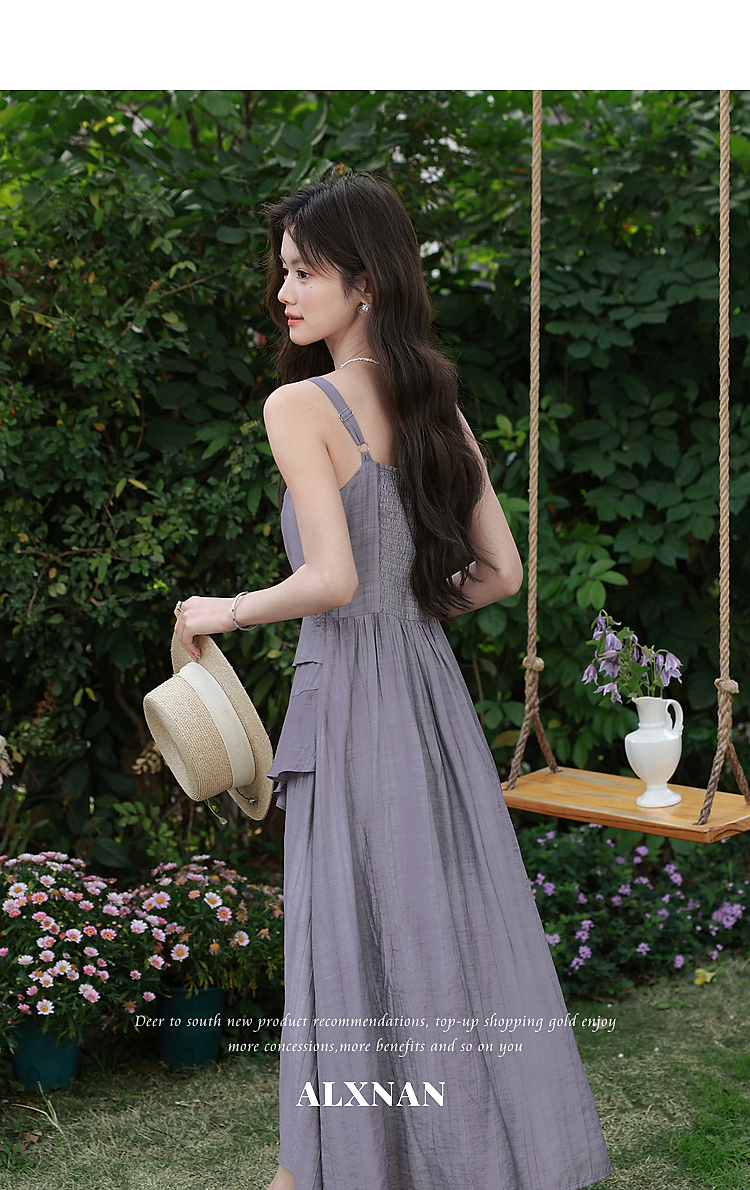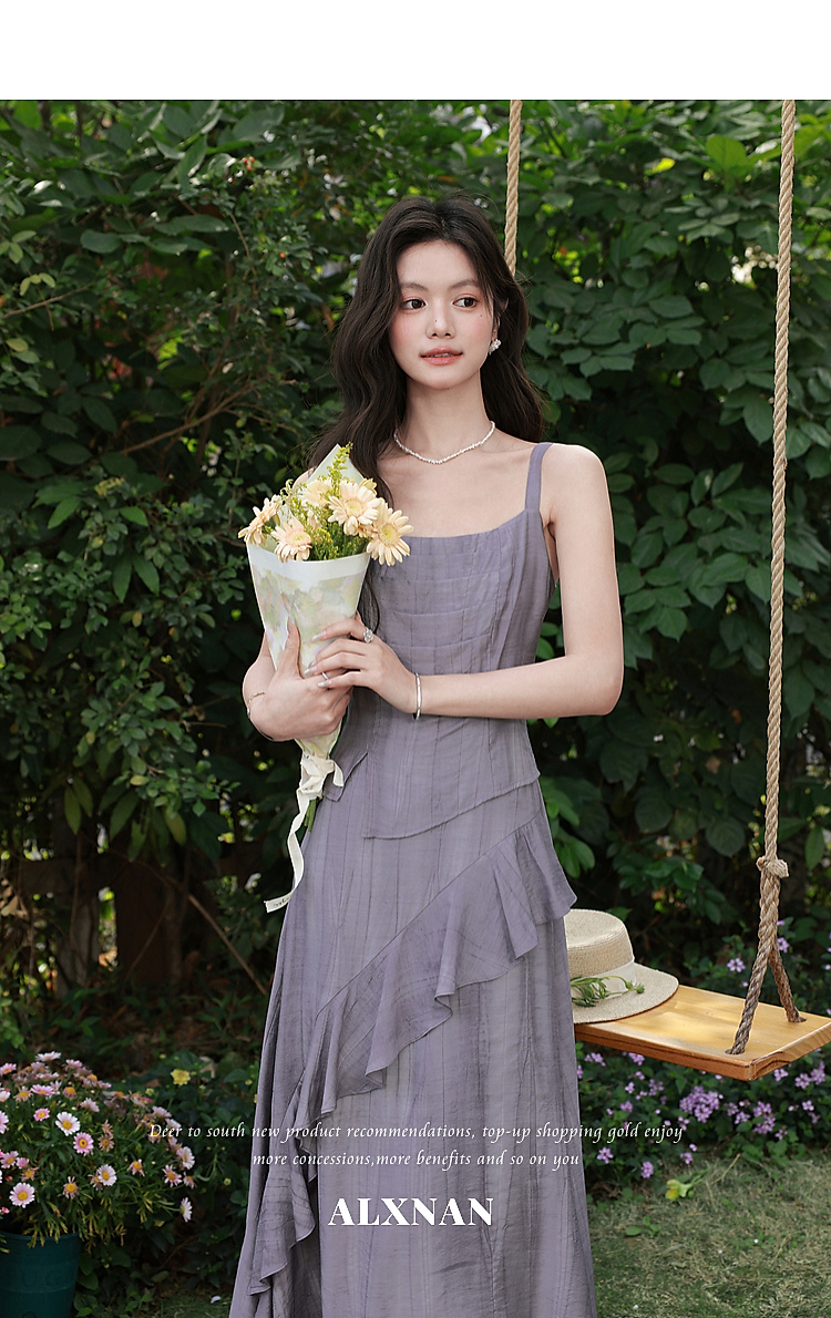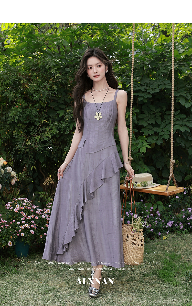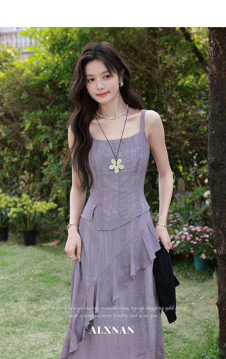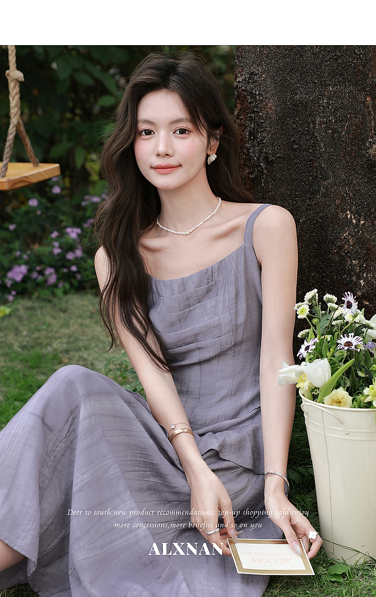 鹿向南「雾紫序章」法式无袖吊带连衣裙女春季收腰设计感紫色长裙