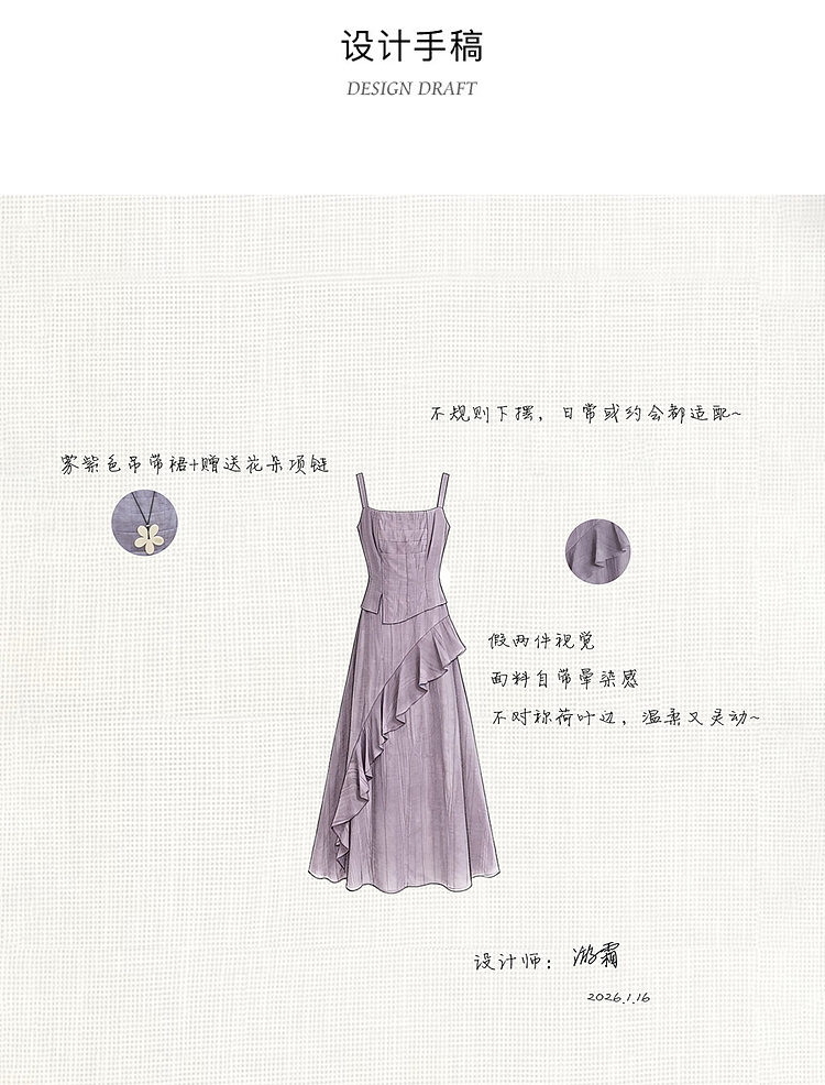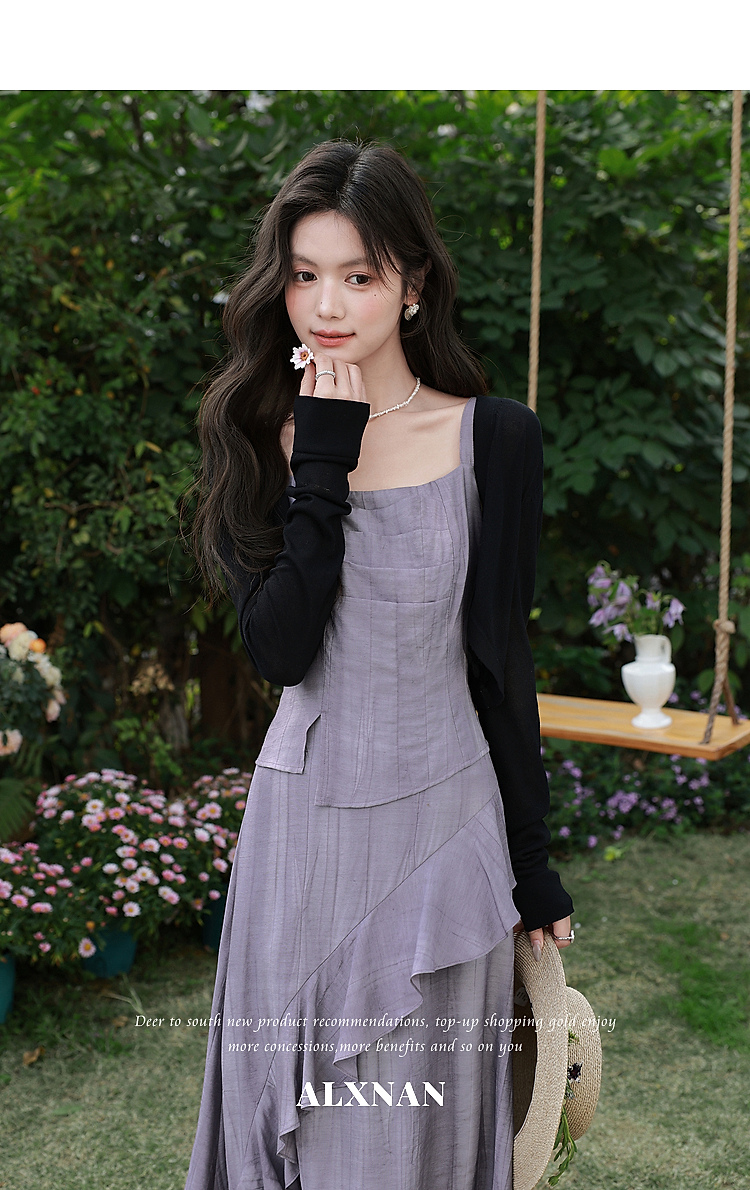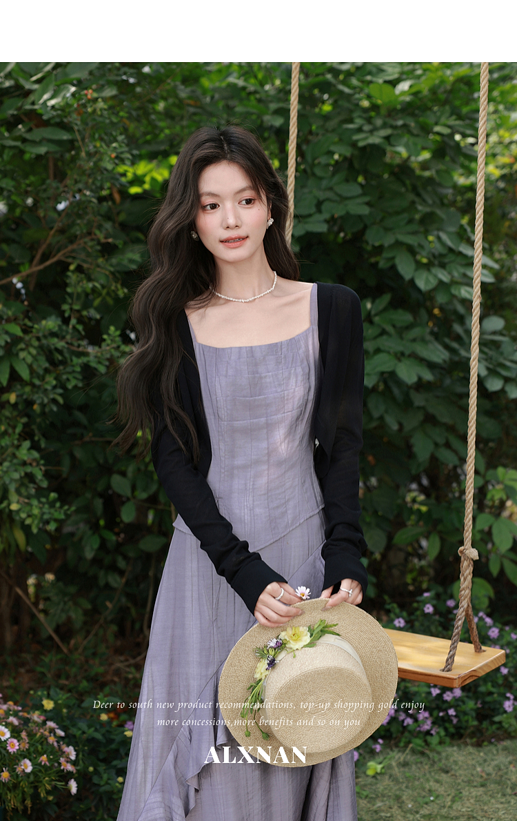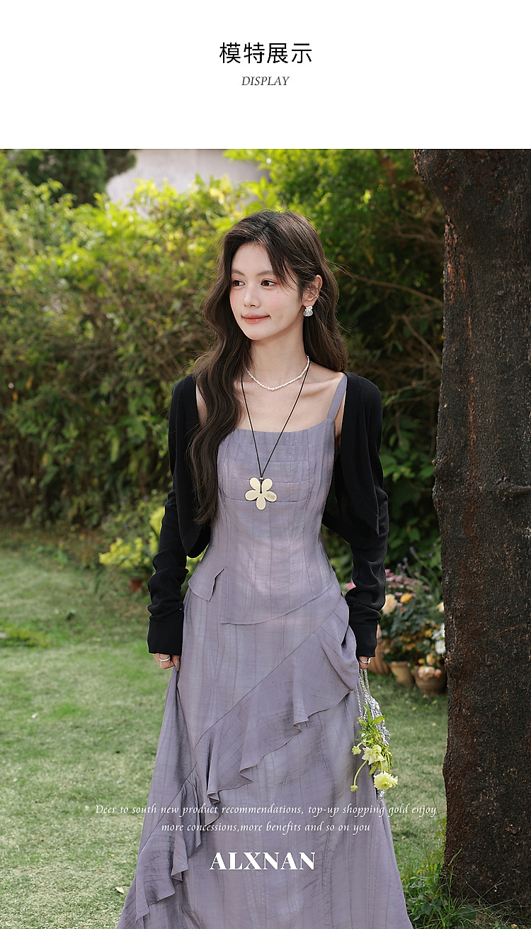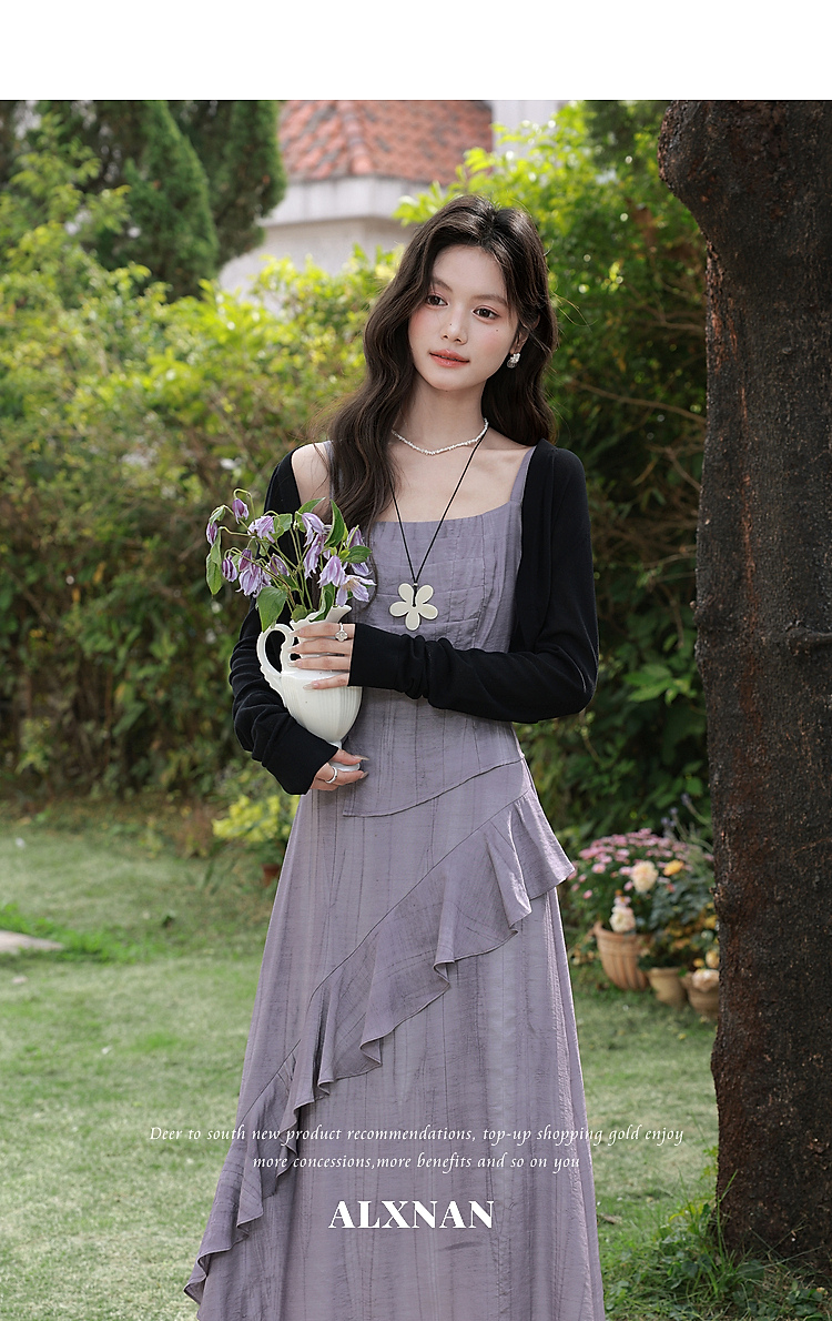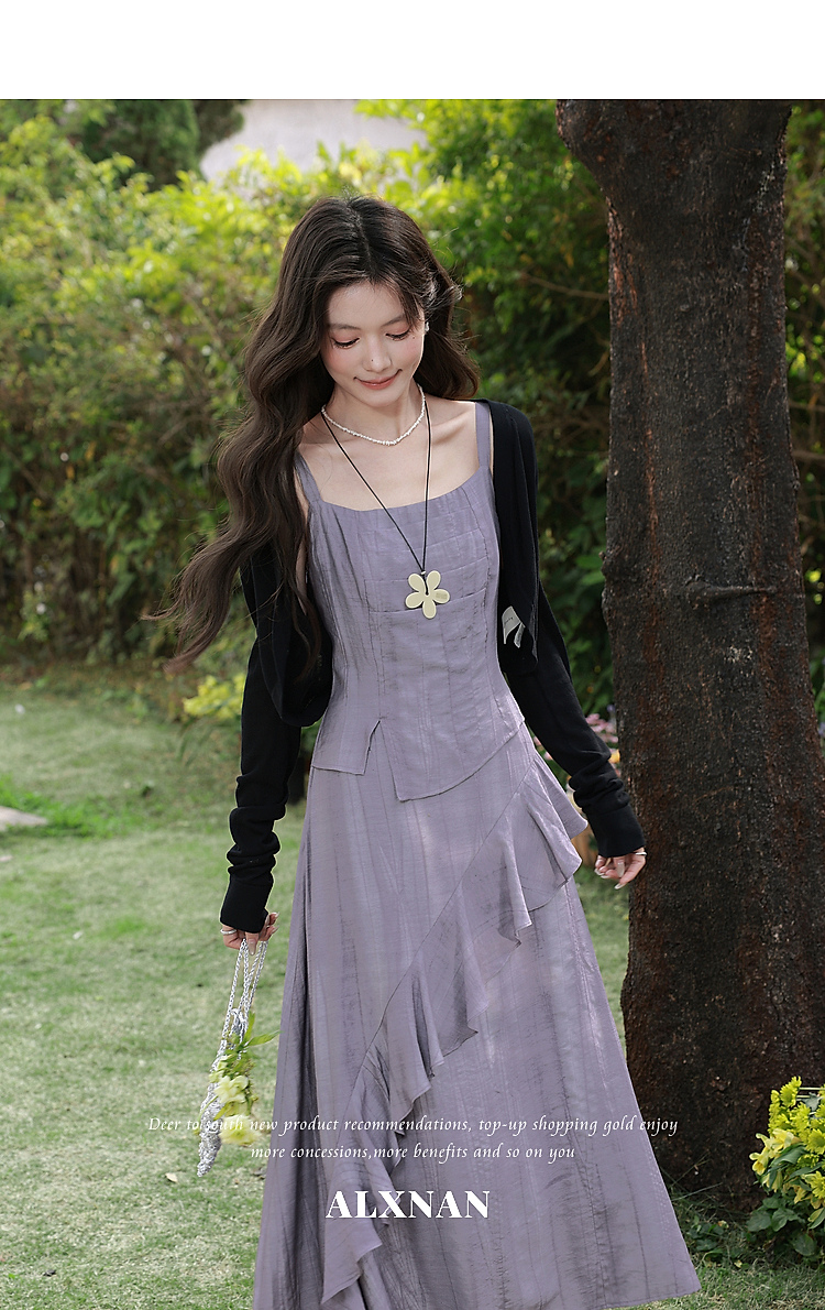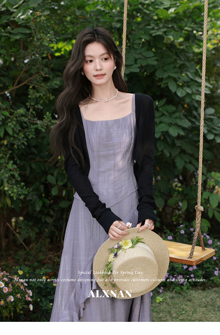鹿向南「雾紫序章」法式无袖吊带连衣裙女春季收腰设计感紫色长裙