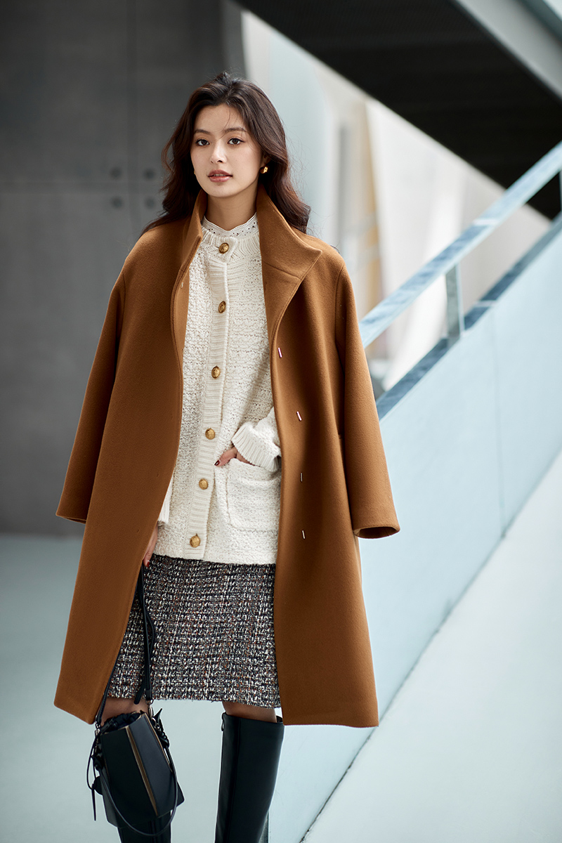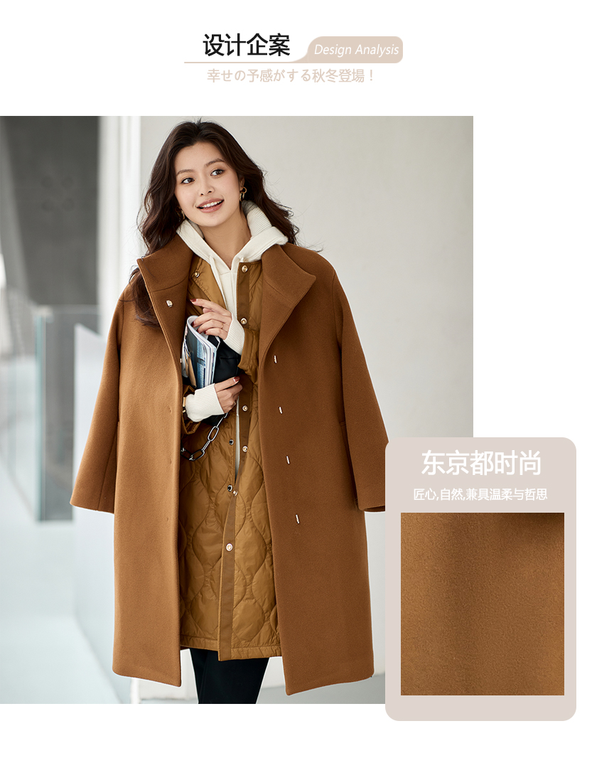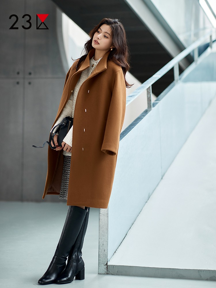 23区日系秋冬季通勤直筒羊毛混纺立领中长呢大衣厚长外套商场同款