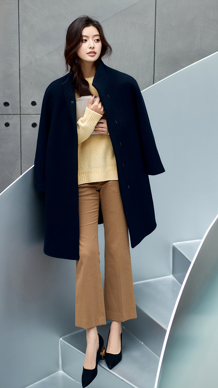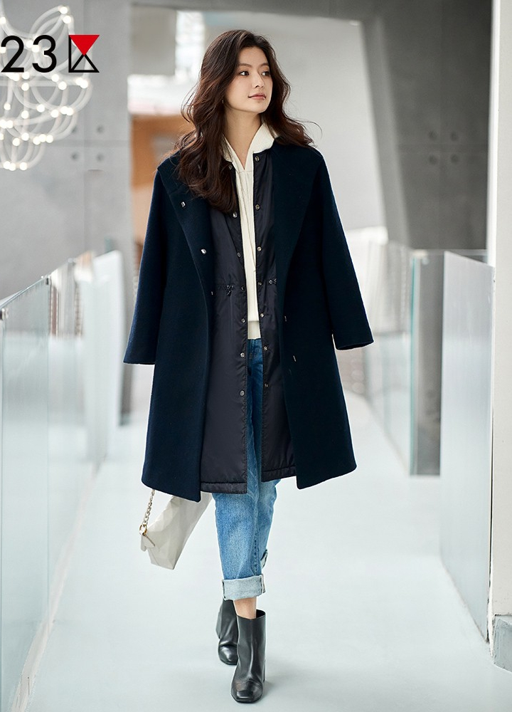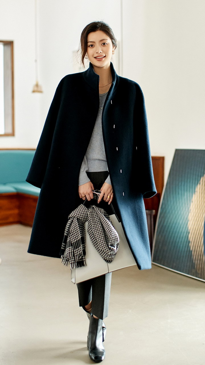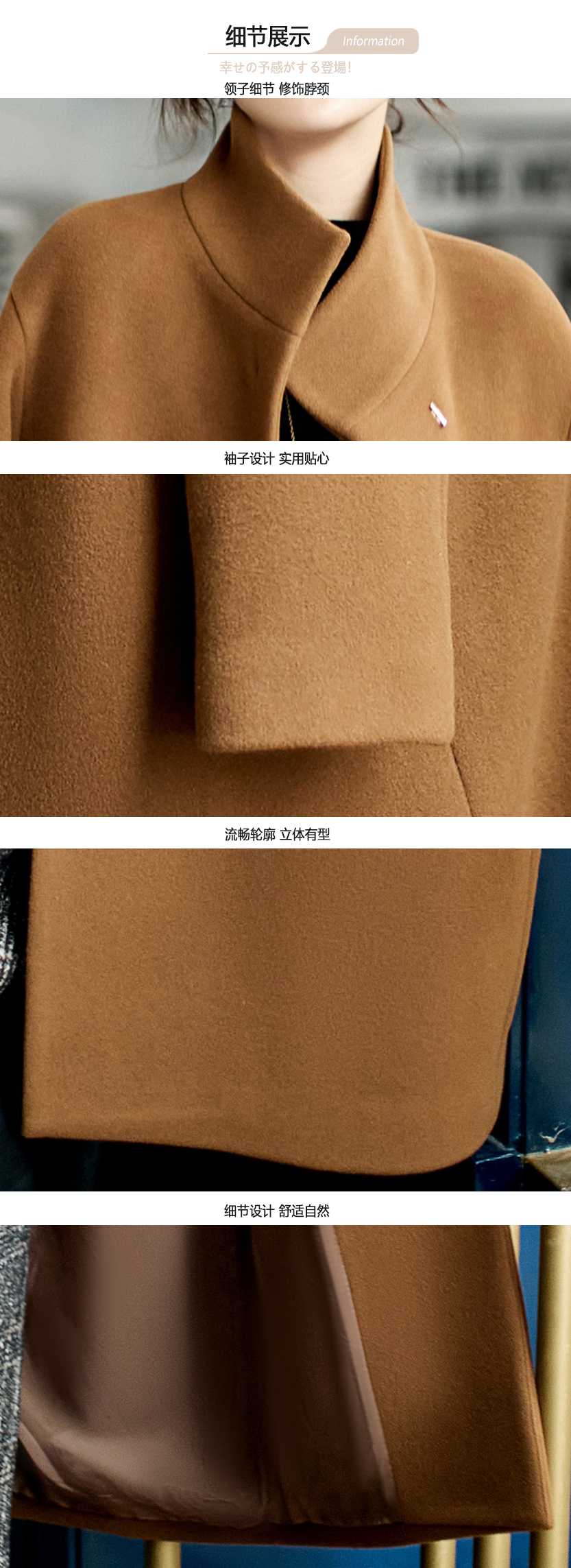 23区日系秋冬季通勤直筒羊毛混纺立领中长呢大衣厚长外套商场同款
