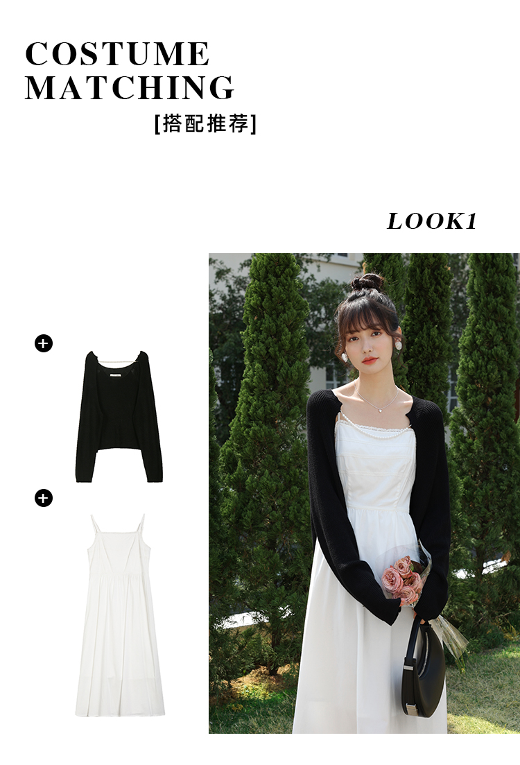 这种从头温柔到脚趾的针织开衫+吊带连衣裙组合