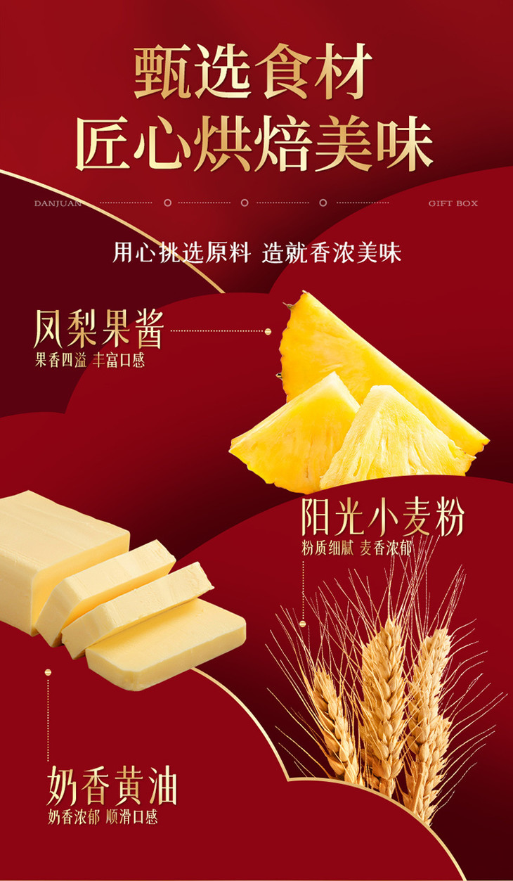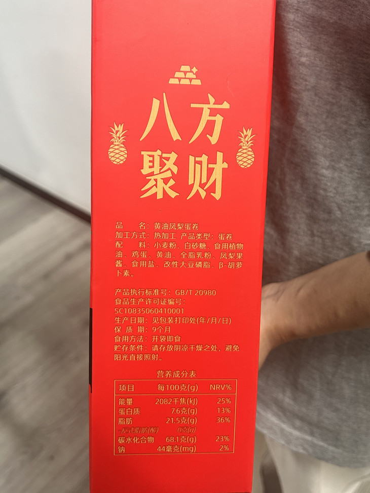 【配料】:小麦粉、白砂糖、食用植物油、鸡蛋、黄油、全脂乳粉、凤梨果酱、食用盐、改性大豆磷脂、β-胡萝卜素。