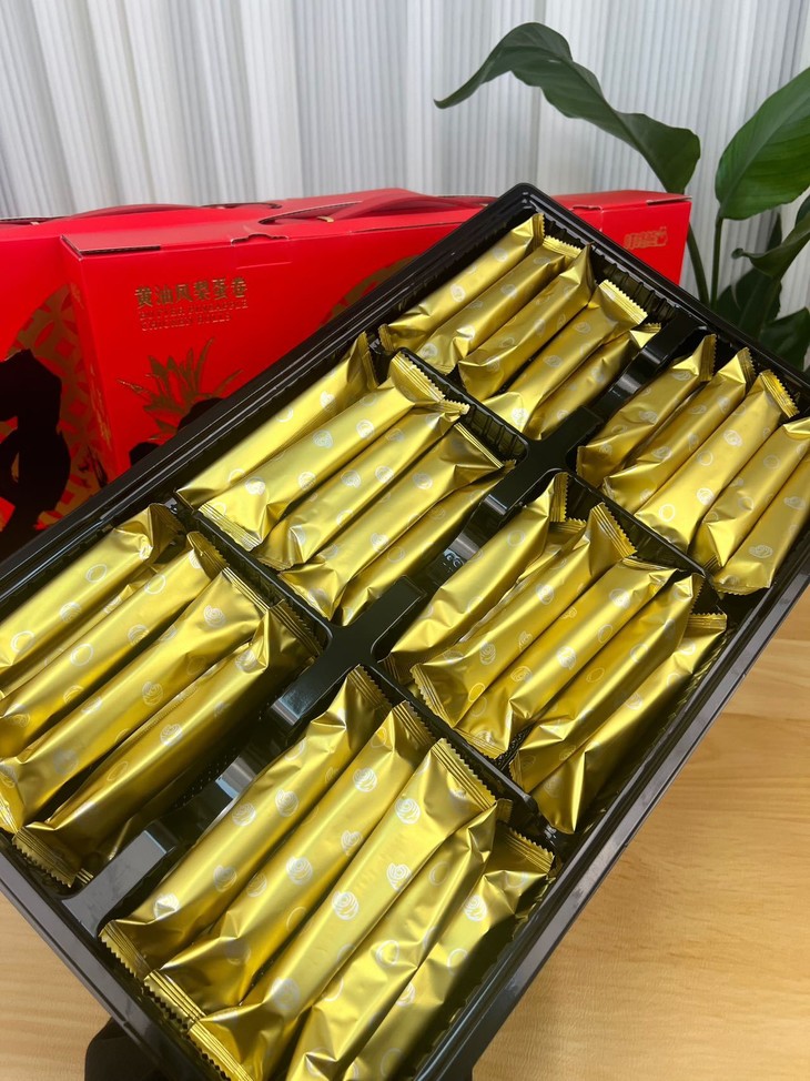 金黄色的内膜,打开礼盒,似一条条黄金 寓意好上加好