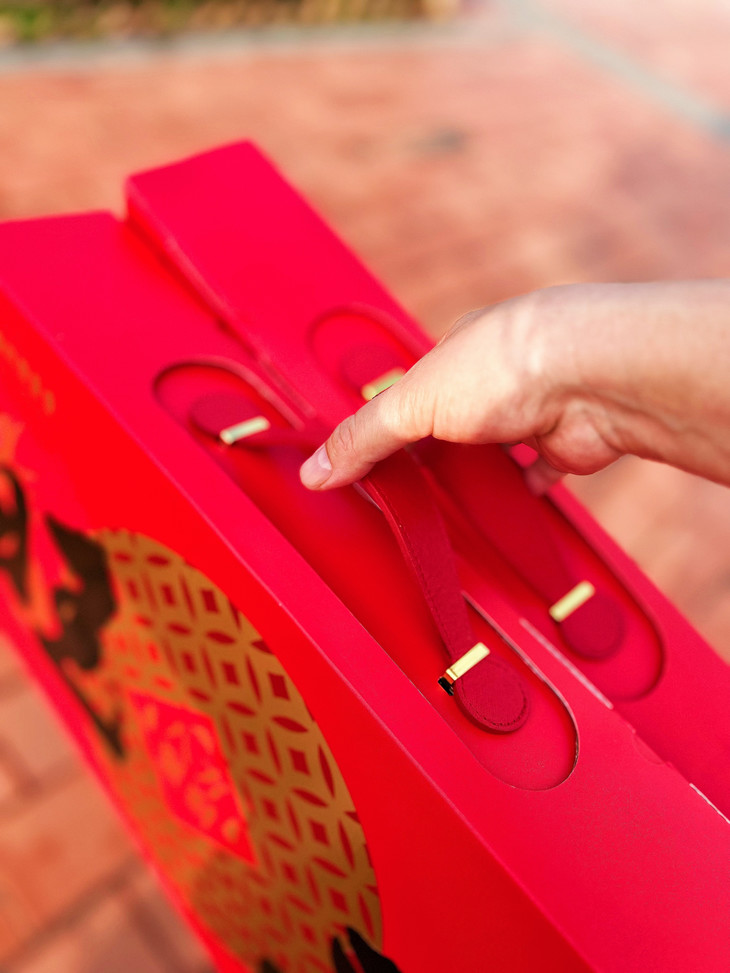 今年的旺来礼盒呢做的更是精妙 每一套旺来礼盒的手提位置改用金属皮扣 金属皮质手提 贵气!!!拿着有档次!!