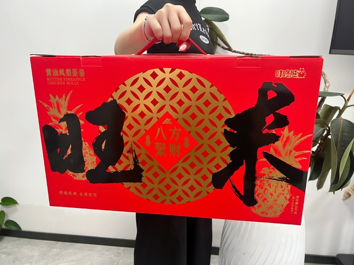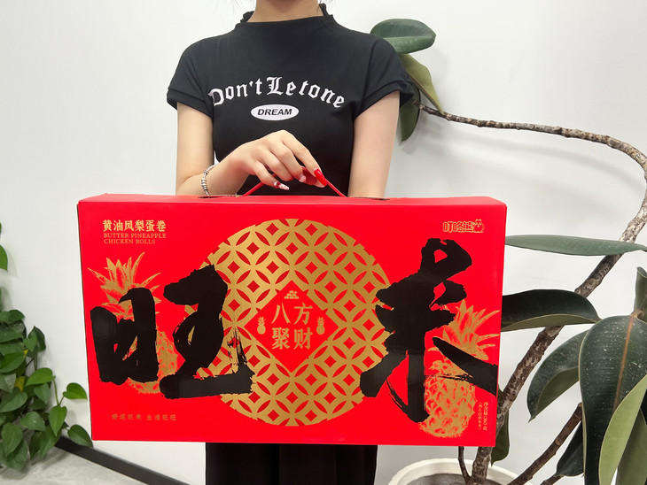 旺来蛋卷礼盒整提提起来老大一份🤩,尺寸约有500*85*300mm霸气‼ 放着就透露一股旺劲,提在手里更是旺到没朋友~ 🔆感觉新一年的好运都被它直接拿捏了!