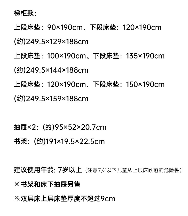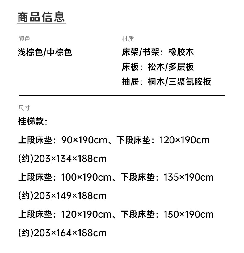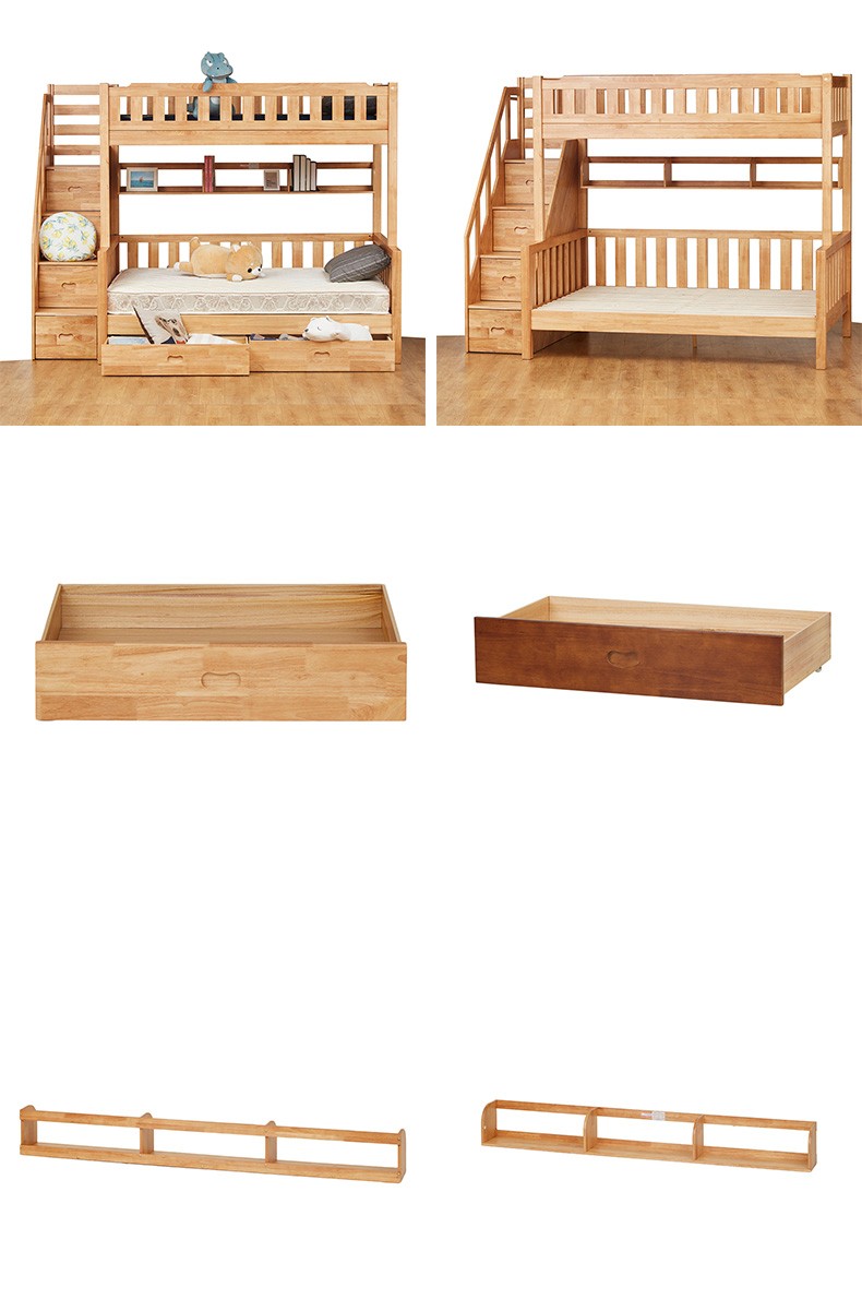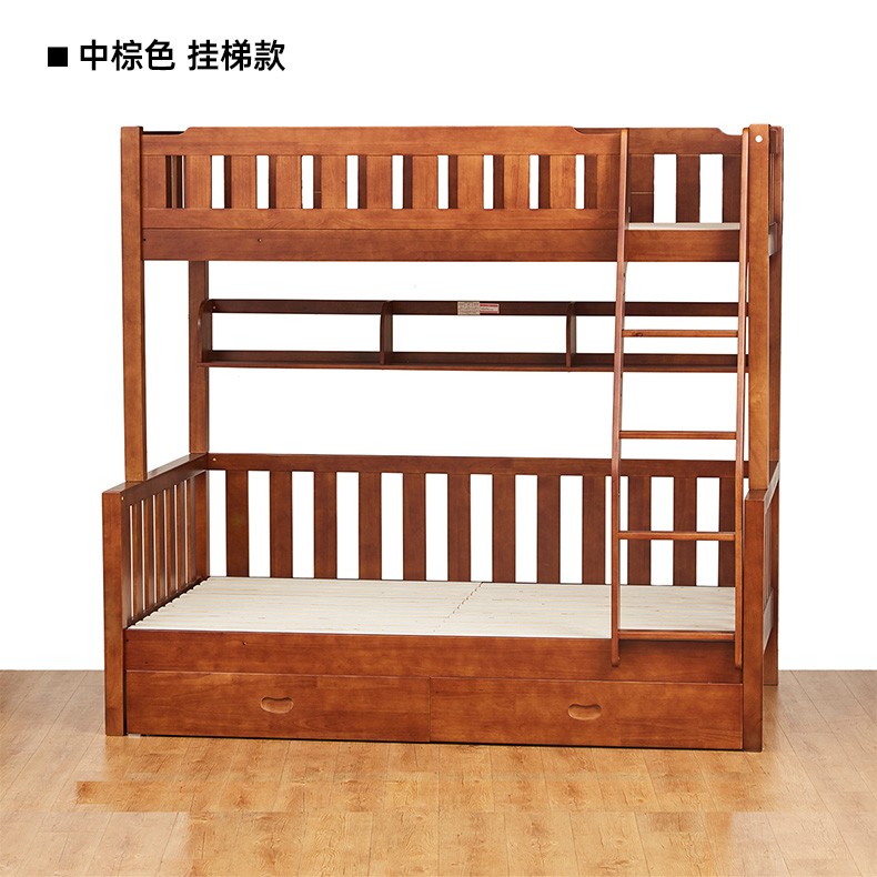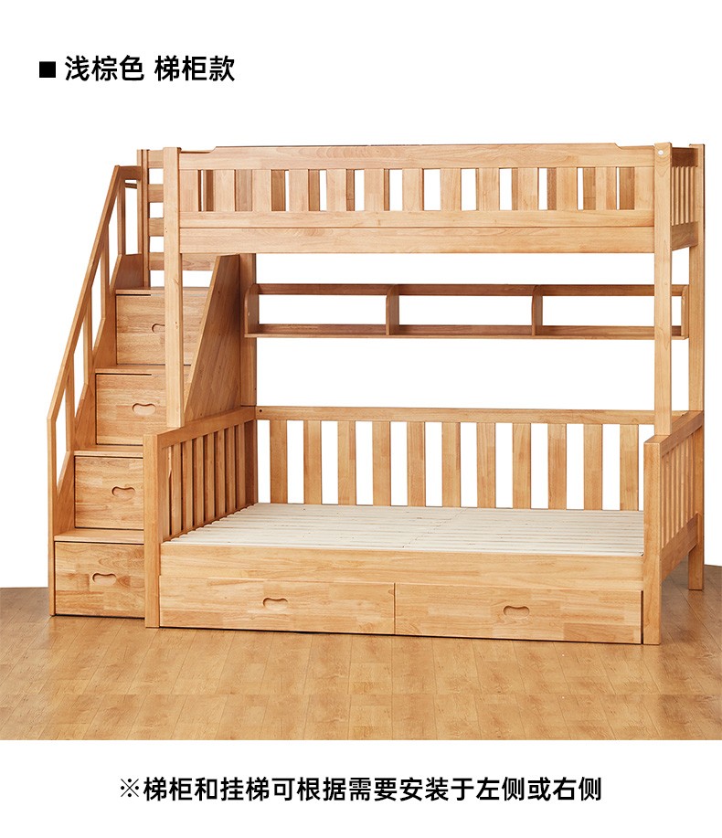 【家具】双层床 赛罗奥(梯柜款)中棕/浅棕 配套书架/抽屉(1491元以下需自行安装)