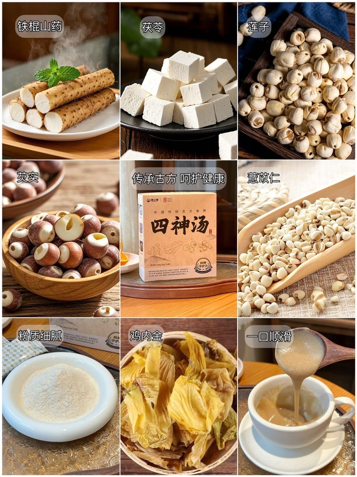 ▪ 滋养身心的古法四神汤 ▪ 每一口都是自然的馈赠 🍃精选食材:山药、茯苓、芡实、莲子、鸡内金、薏苡仁 让四神汤成为你四季的温暖陪伴~