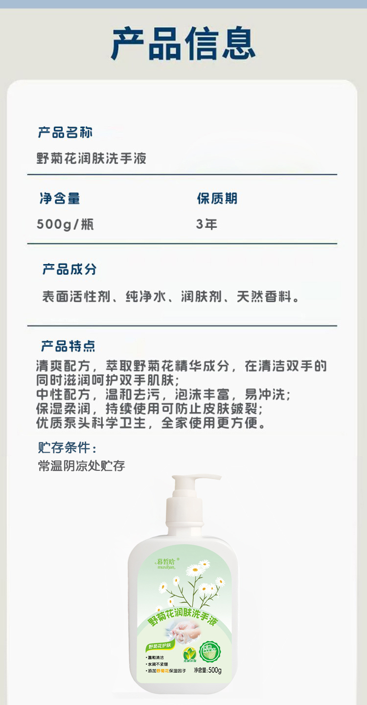 【温和配方】暮皙晗 野菊花润肤洗手液 500g/瓶 水润舒缓