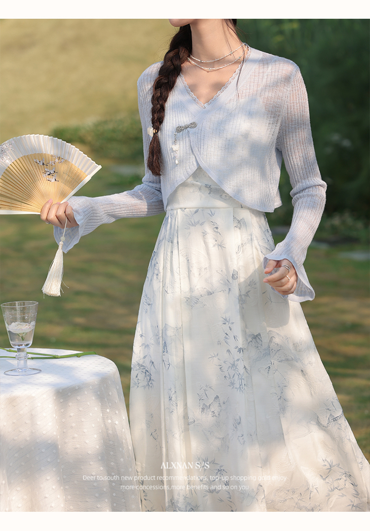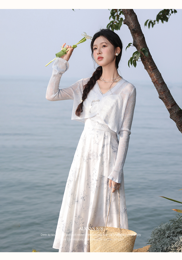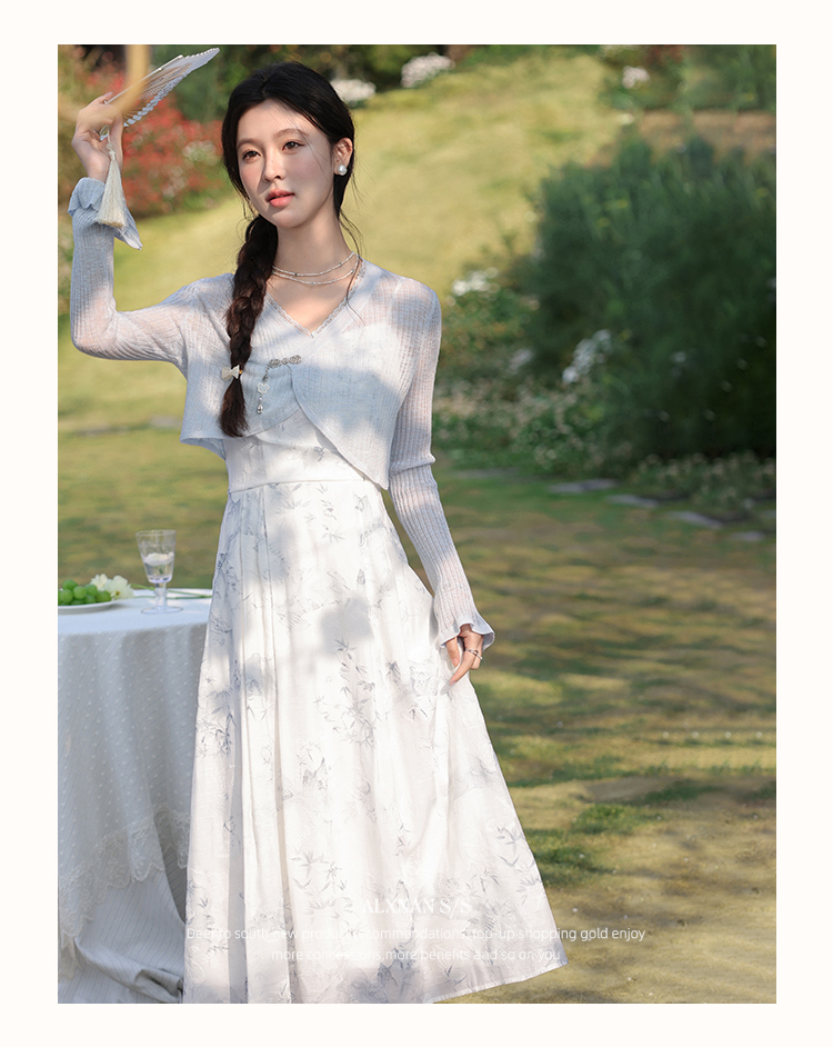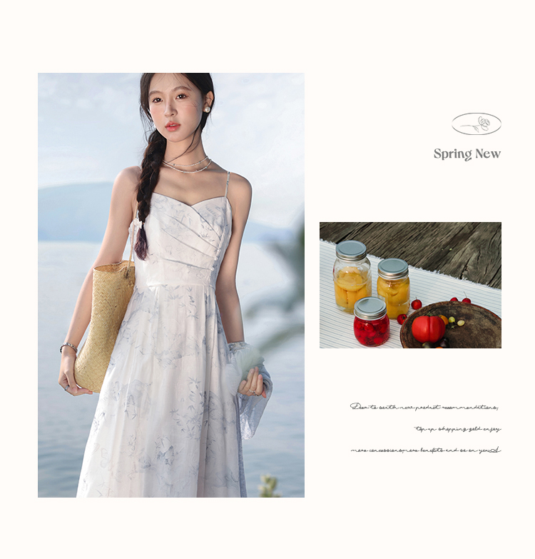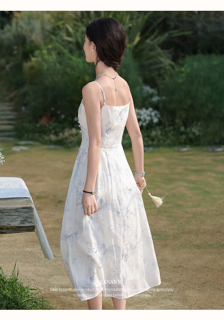 鹿向南 「清雅花信」法式复古碎花女吊带连衣裙夏季新款度假风长裙