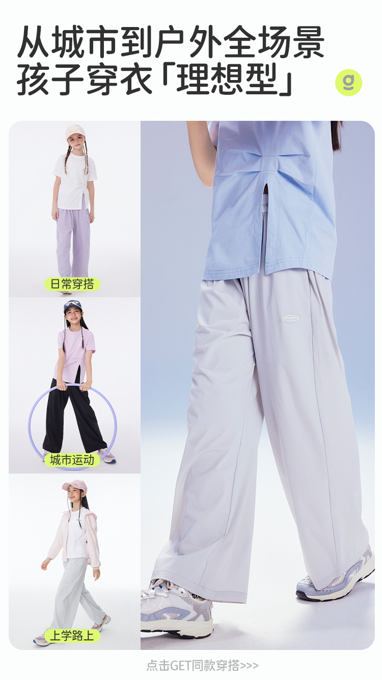 onmygame【荷叶防泼水】 伞兵裤男女童可穿长裤11