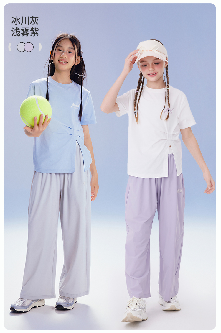 onmygame【轻舞风琴】女童短袖t恤儿童百褶运动上衣夏季2024新款
