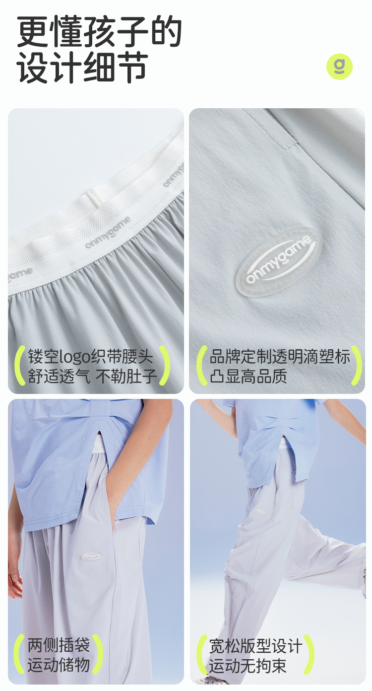 onmygame【超轻绒感速干】儿童运动长裤3A抑菌抗静电裤子25秋新款