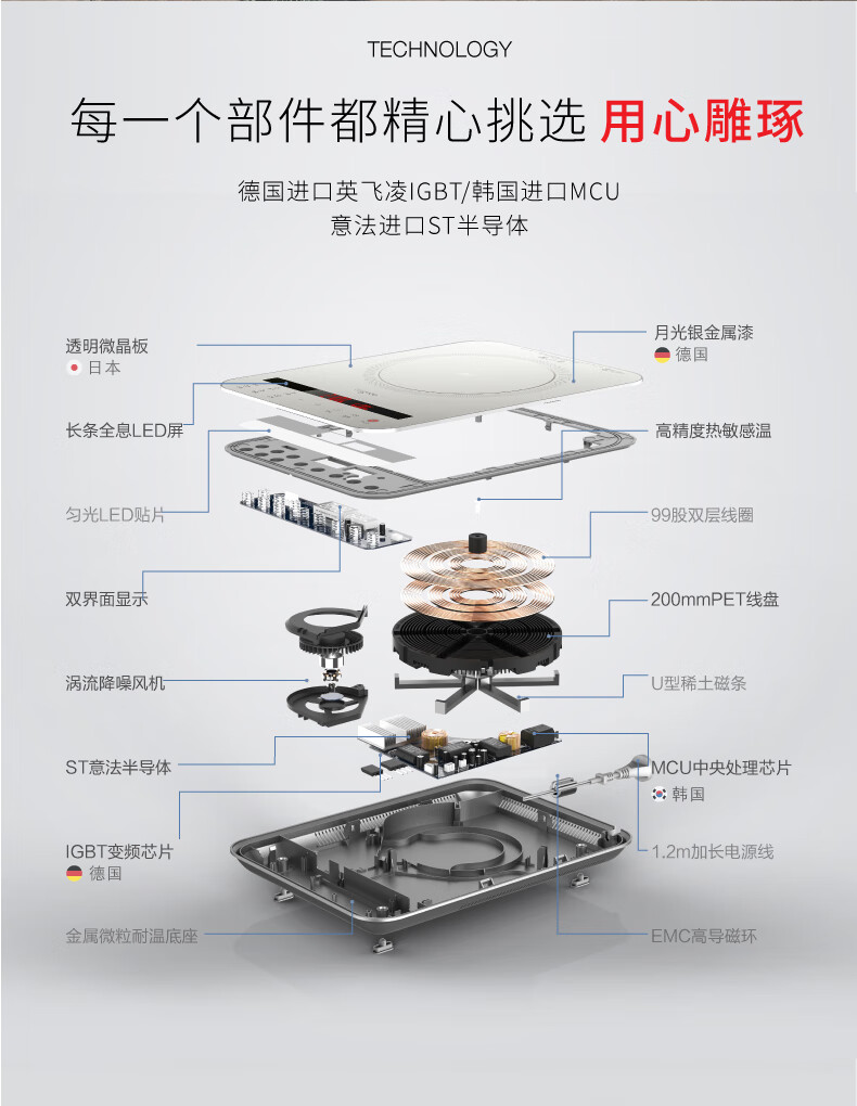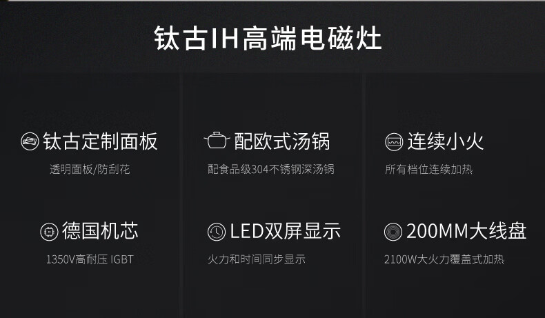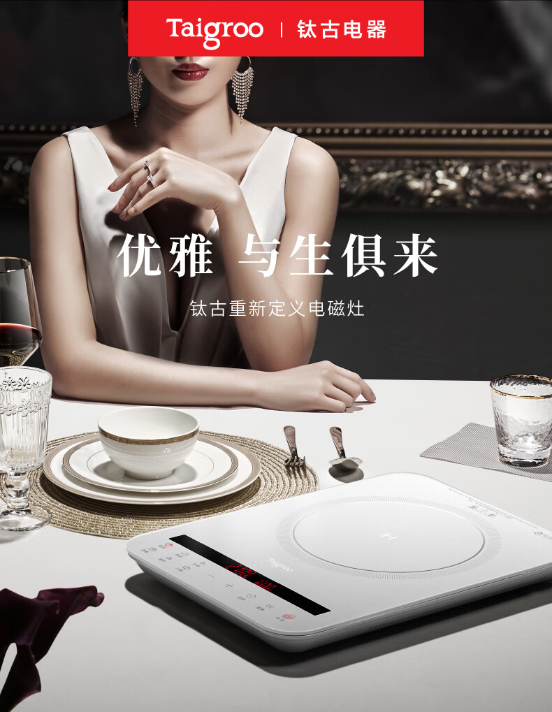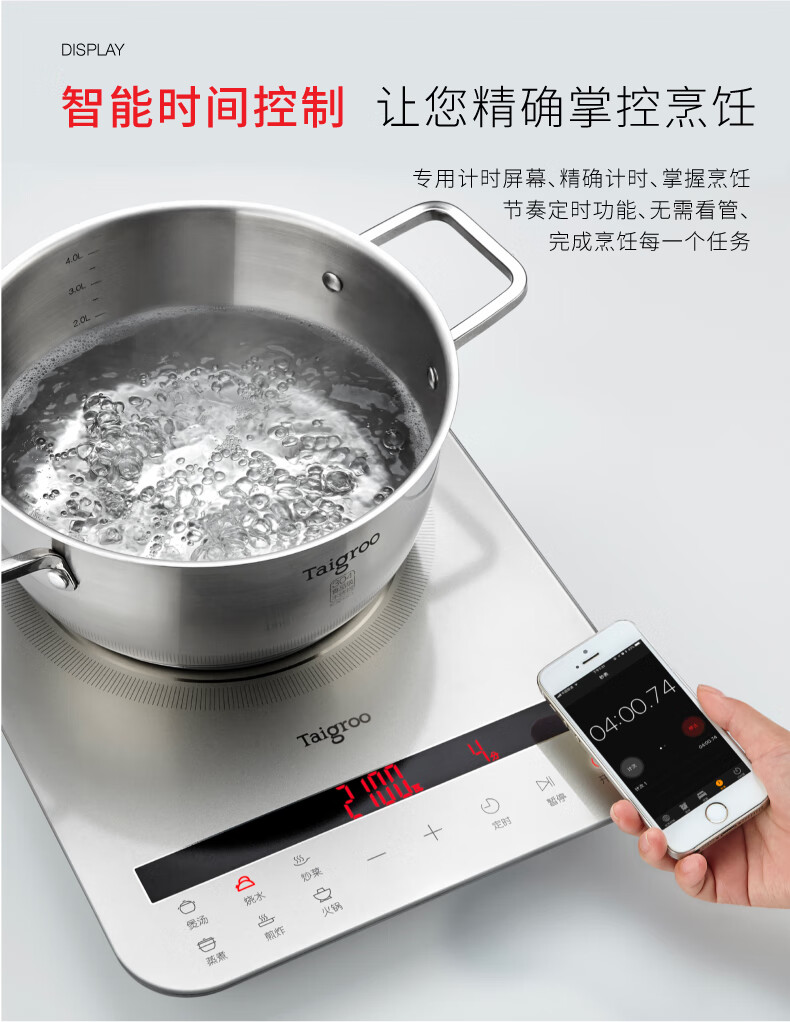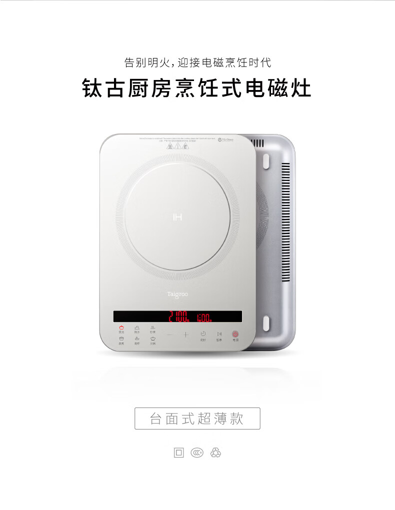 钛古(Taigroo)钛古电磁炉家用触控按键变频连续小火低音超薄电磁灶家电火锅煎炒套装 一代星空灰裸机.(国产板)