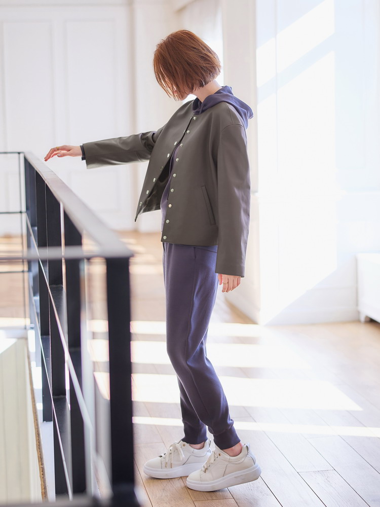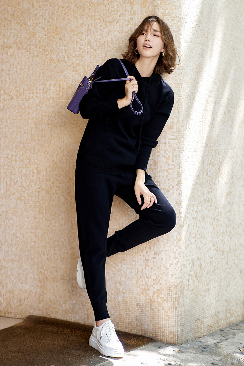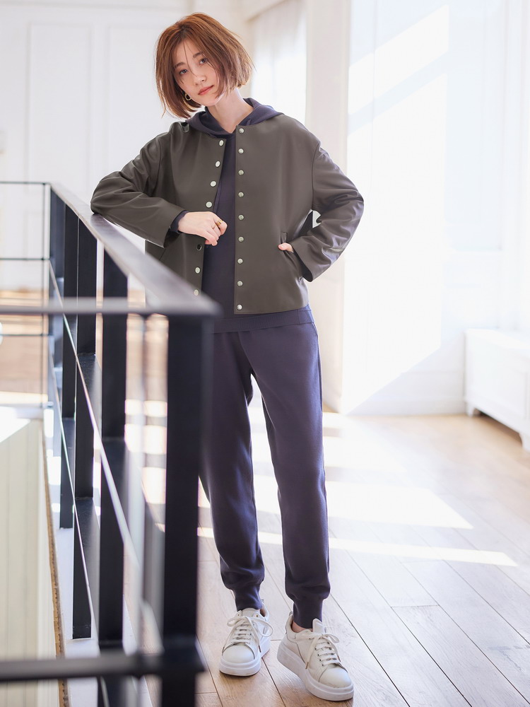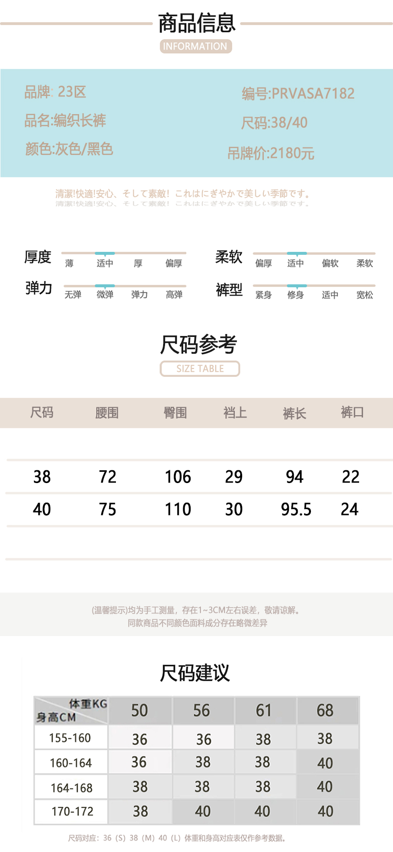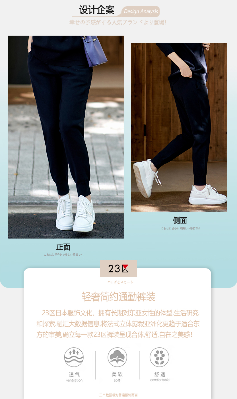 23区日系春季通勤职业OL混纺松紧腰针织长裤收口休闲裤商场同款