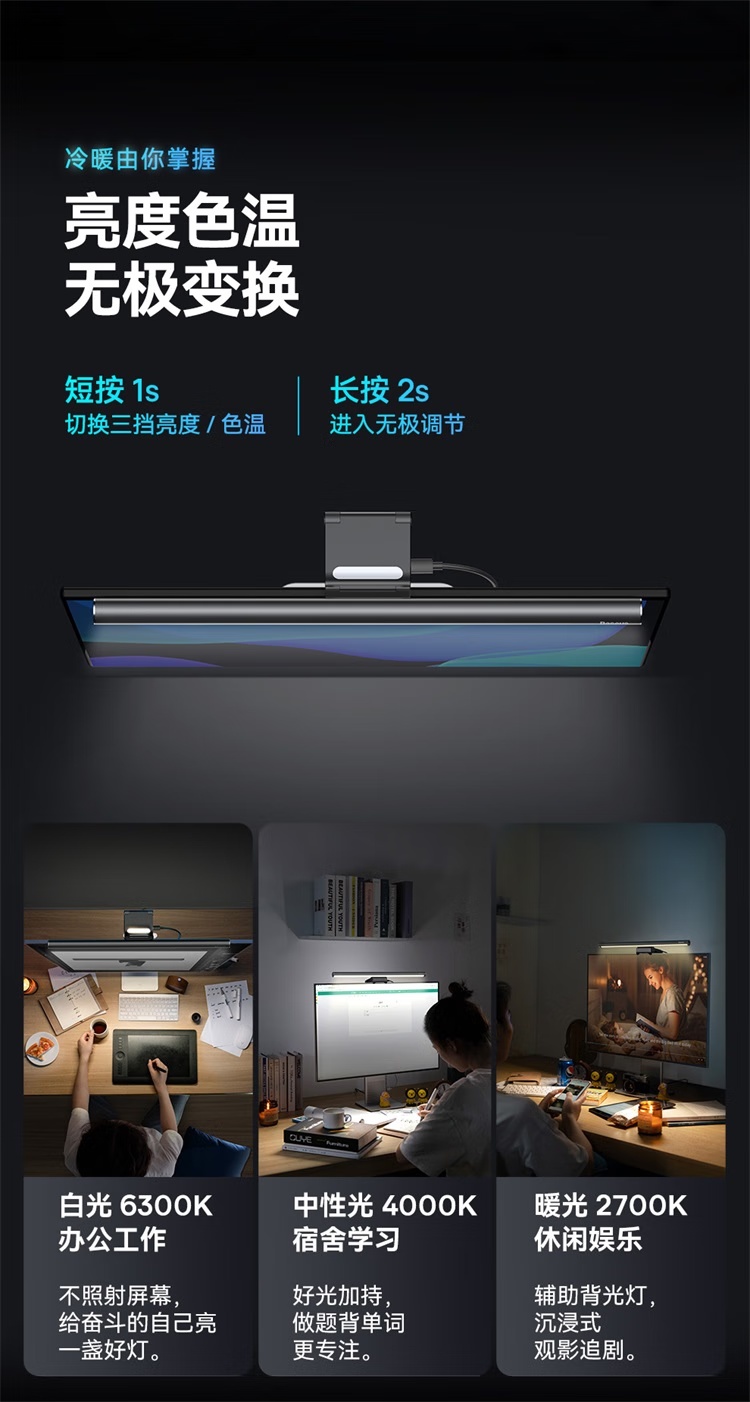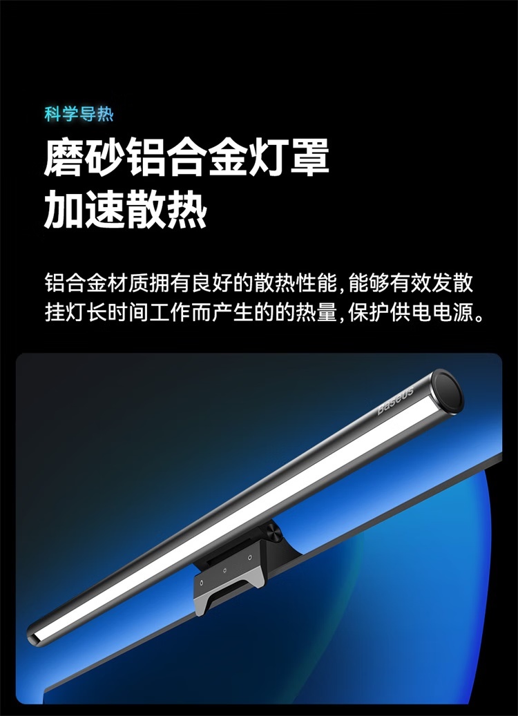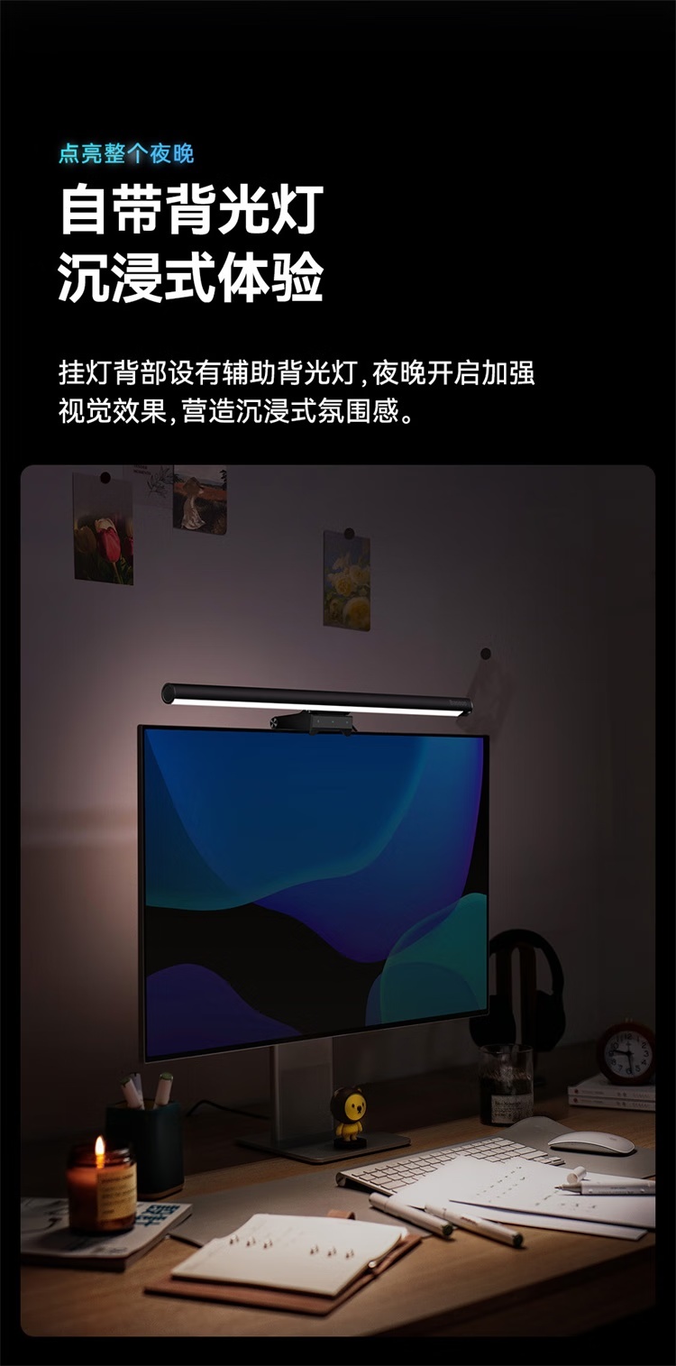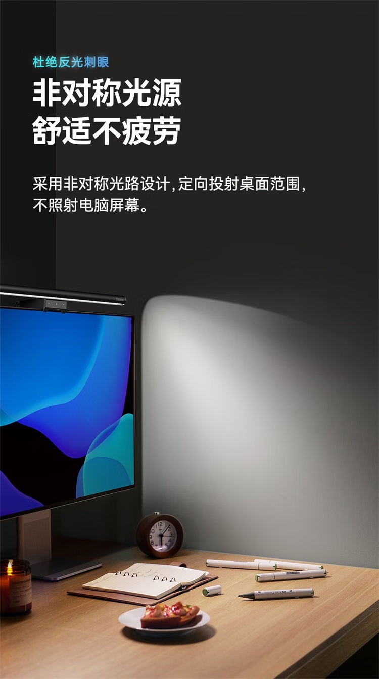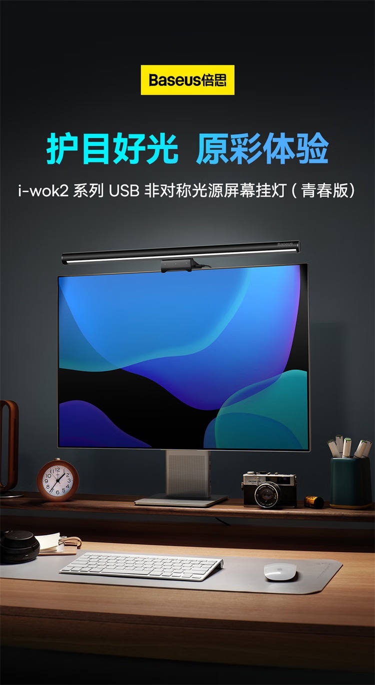 倍思i-wok2系列USB非对称光源屏幕挂灯(青春版)黑色 适用于显示器或笔记本电脑