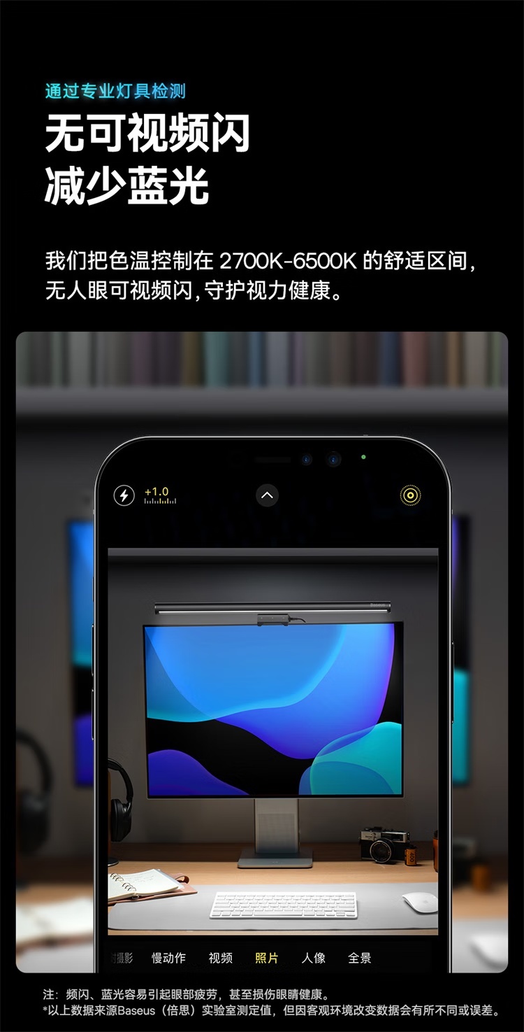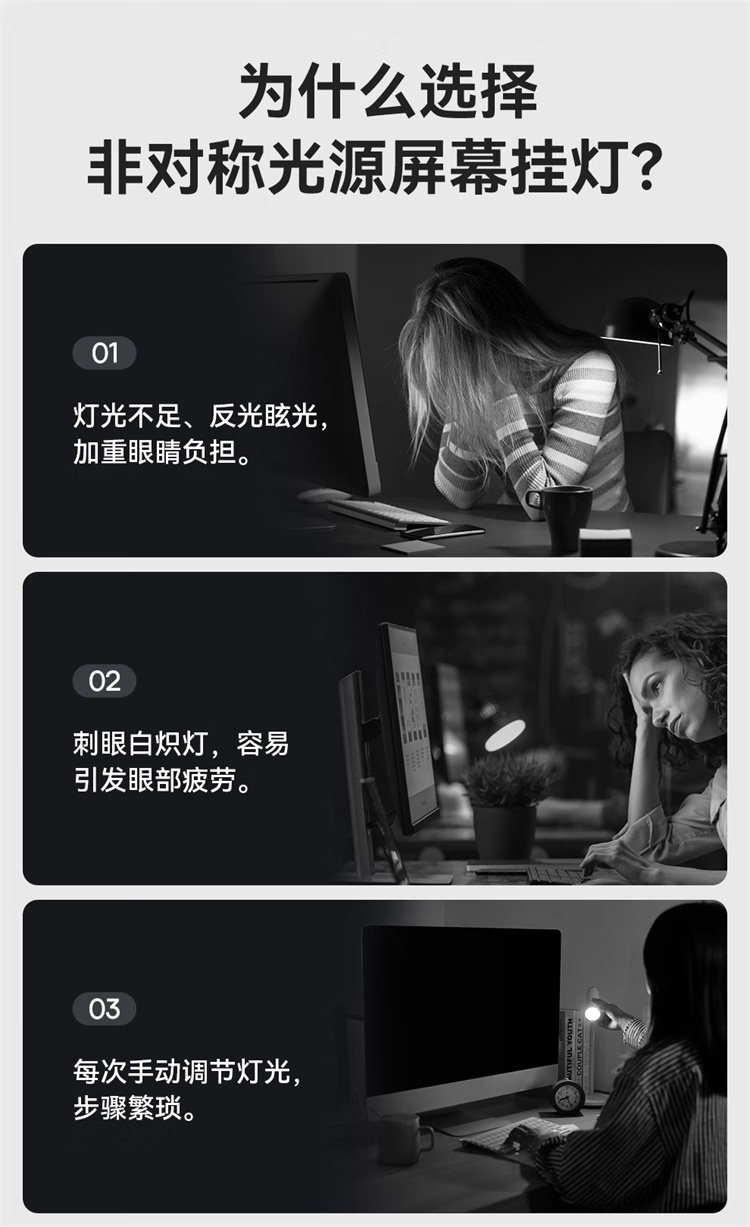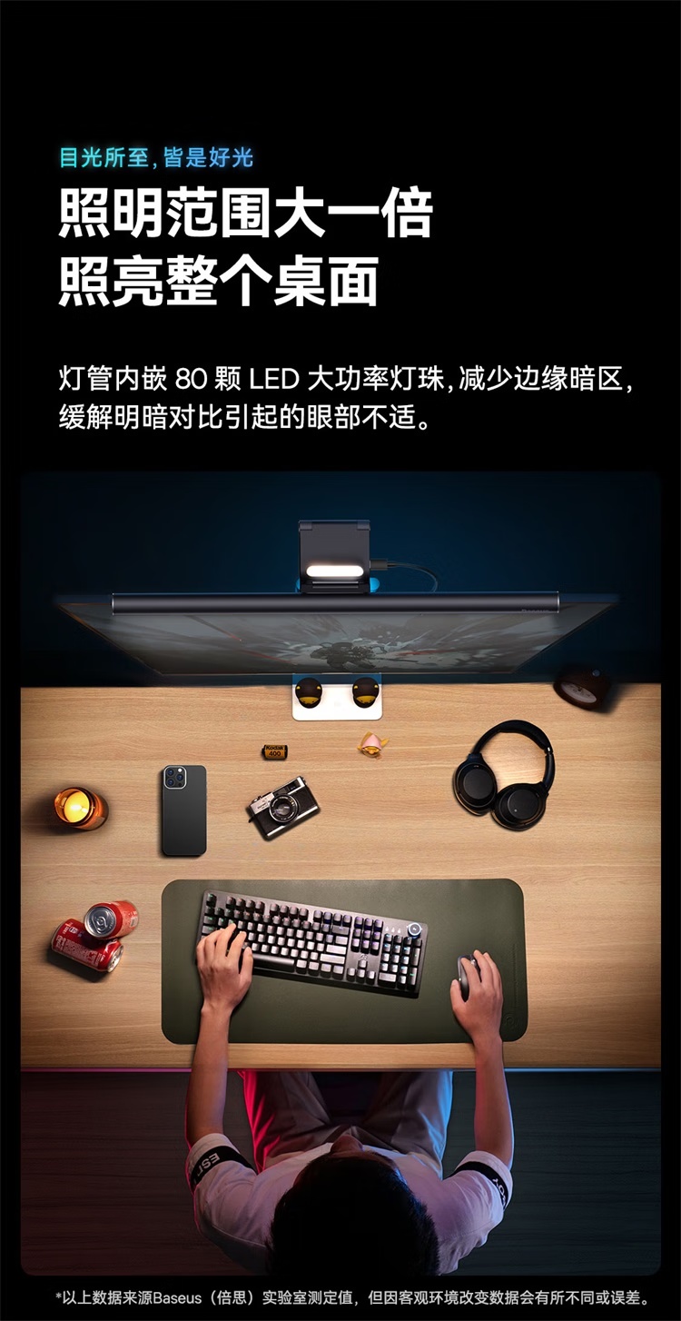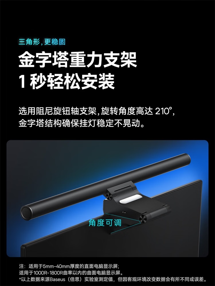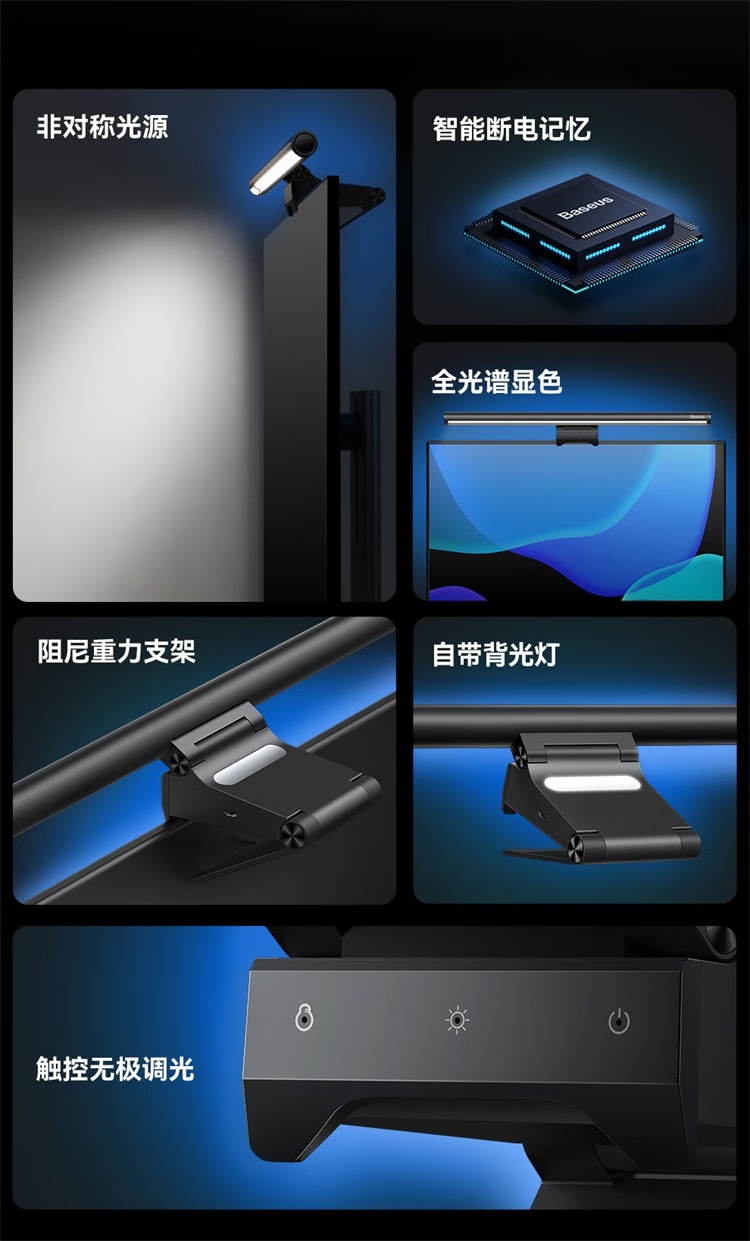 倍思i-wok2系列USB非对称光源屏幕挂灯(青春版)黑色 适用于显示器或笔记本电脑