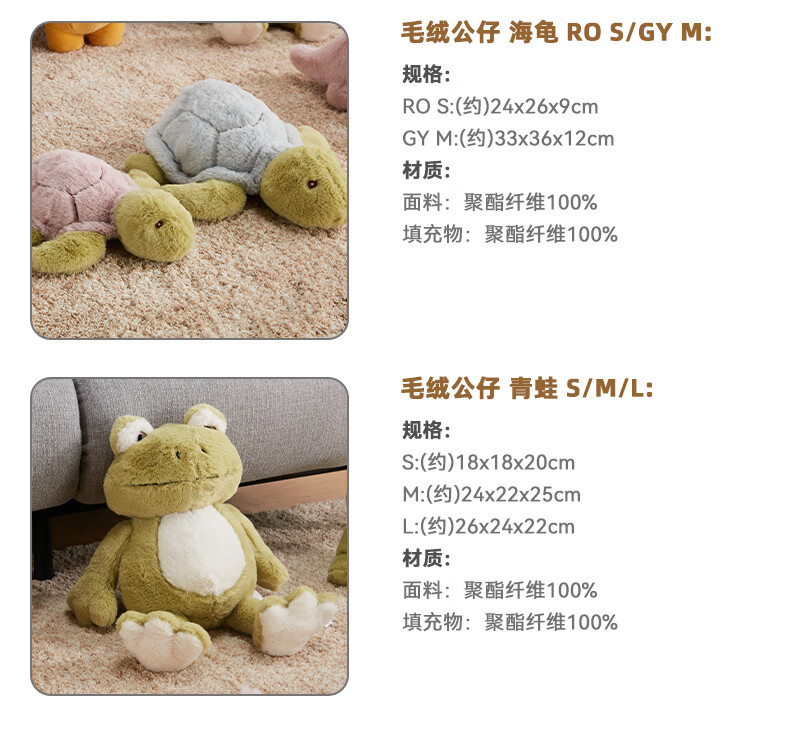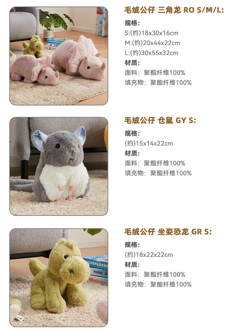 毛绒公仔 仓鼠/恐龙/ 海龟/小狮子青蛙