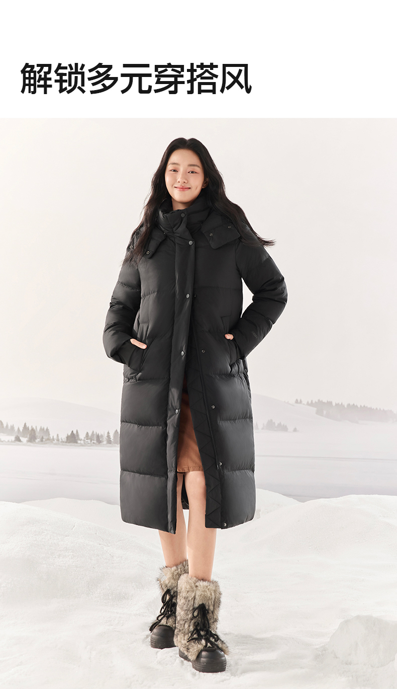 SIINSIIN长款羽绒服冬季2025新款时尚连帽过膝保暖防风外套上衣