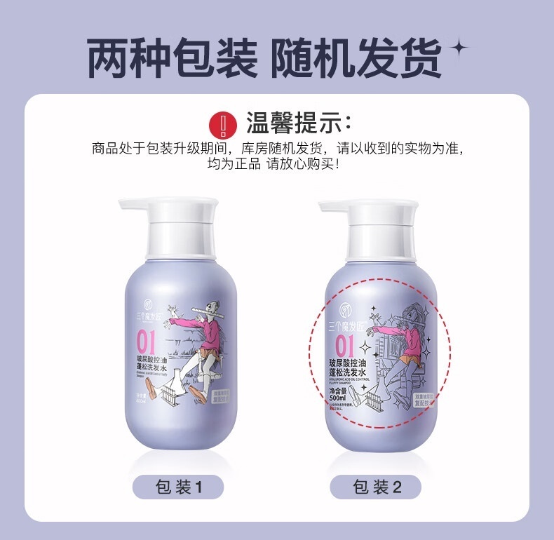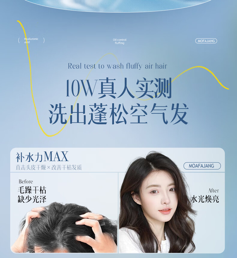 三个魔发匠玻尿酸洗发水(无硅油洗发露清爽控油轻盈蓬松润顺洗发乳)【工厂直发】
