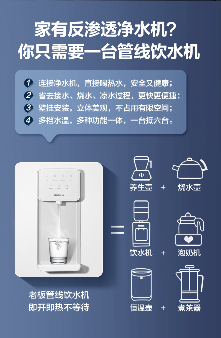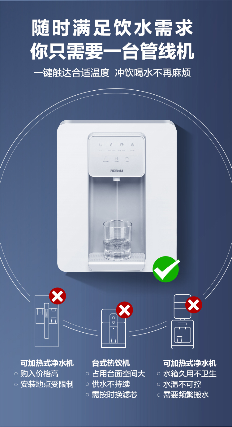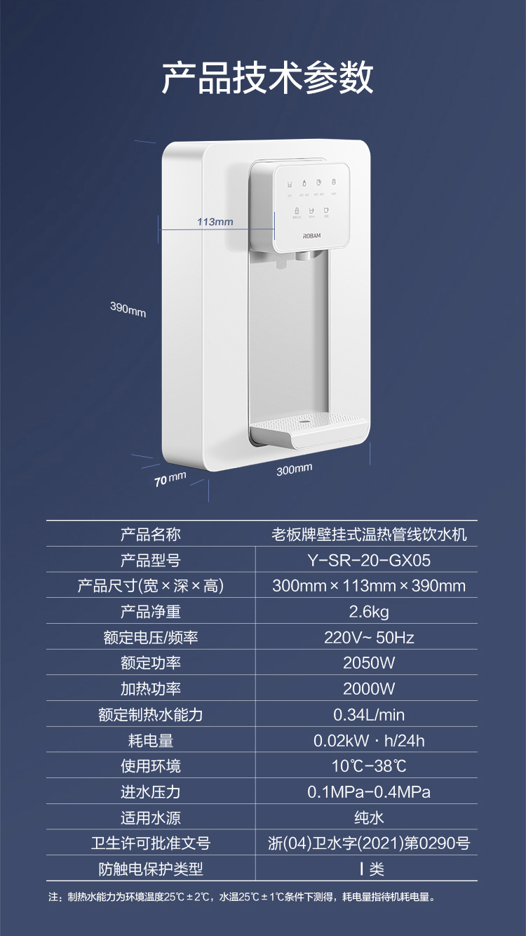 老板(Robam)GX05 可台式 【管线机升级款】浅莲灰管线机 家用净水器搭档 UV杀菌 6档调温 壁挂式直饮机 饮水机GX05 可台式 【管线机升级款】浅莲灰