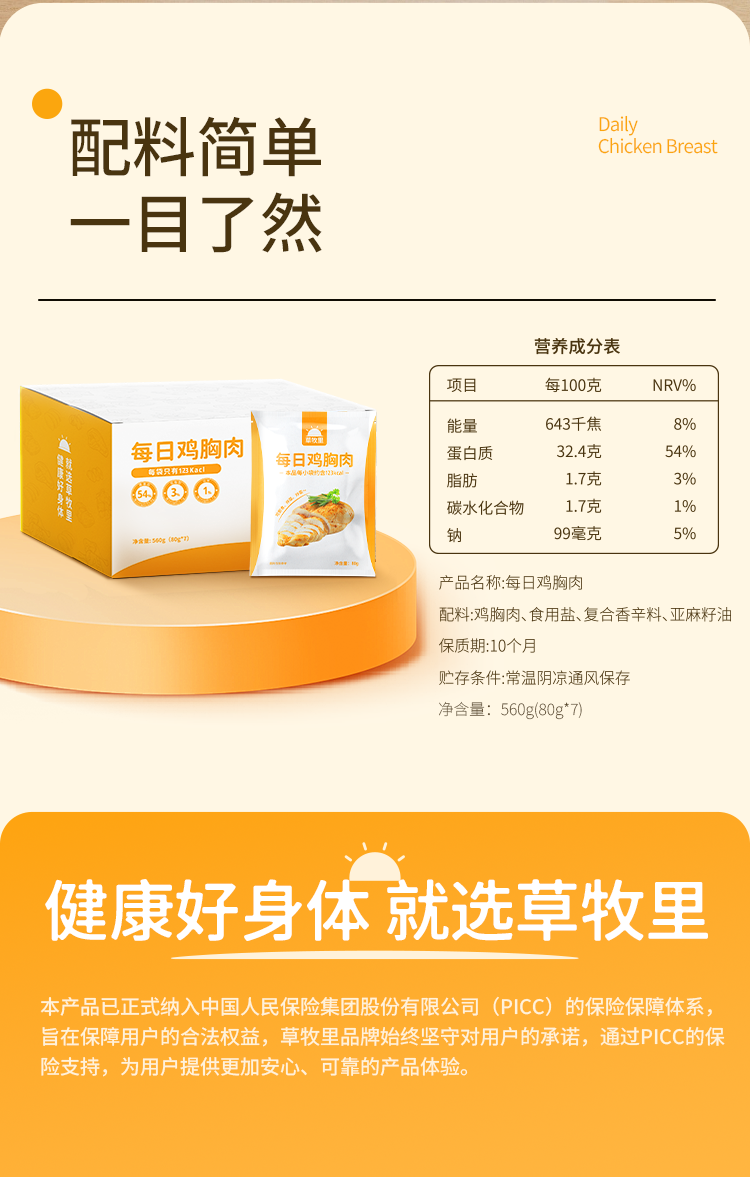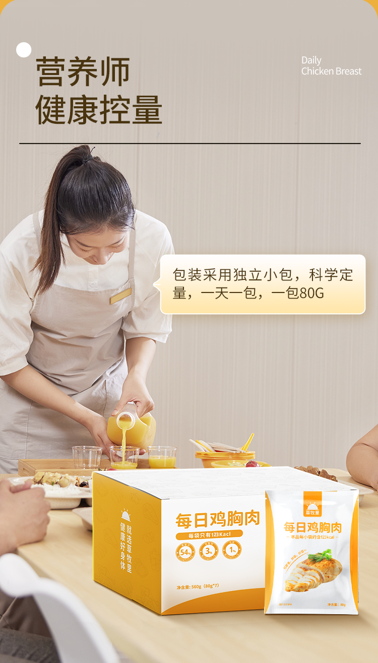【100积分+34元】草牧里 每日鸡胸肉 80g*7袋/箱 方便携带易于保存