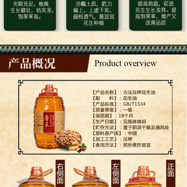 鲁王古法压榨花生油5L
