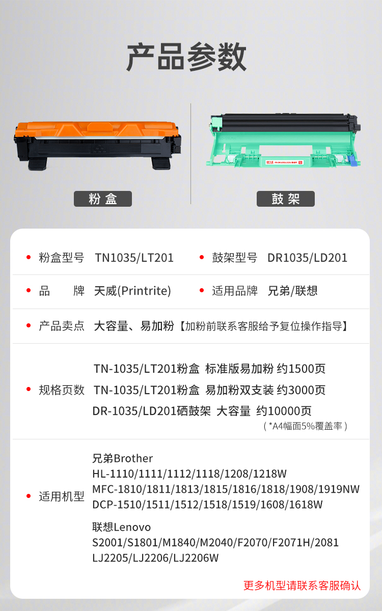 天威TN-1035/LT201粉盒 适用兄弟1118 1208 1218W 1608 1618 1816 1919NW墨盒 联想LT201 M7206 7216 LJ2206墨粉