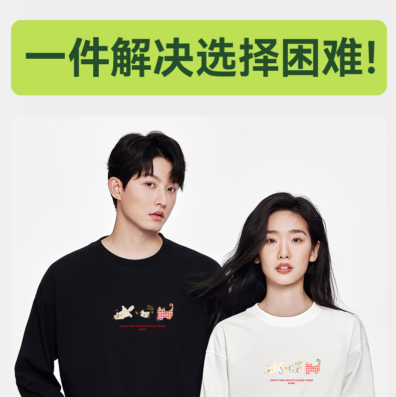 「棉的美学」美式潮流打底衫长袖T恤男女同款休闲个性设计感上衣